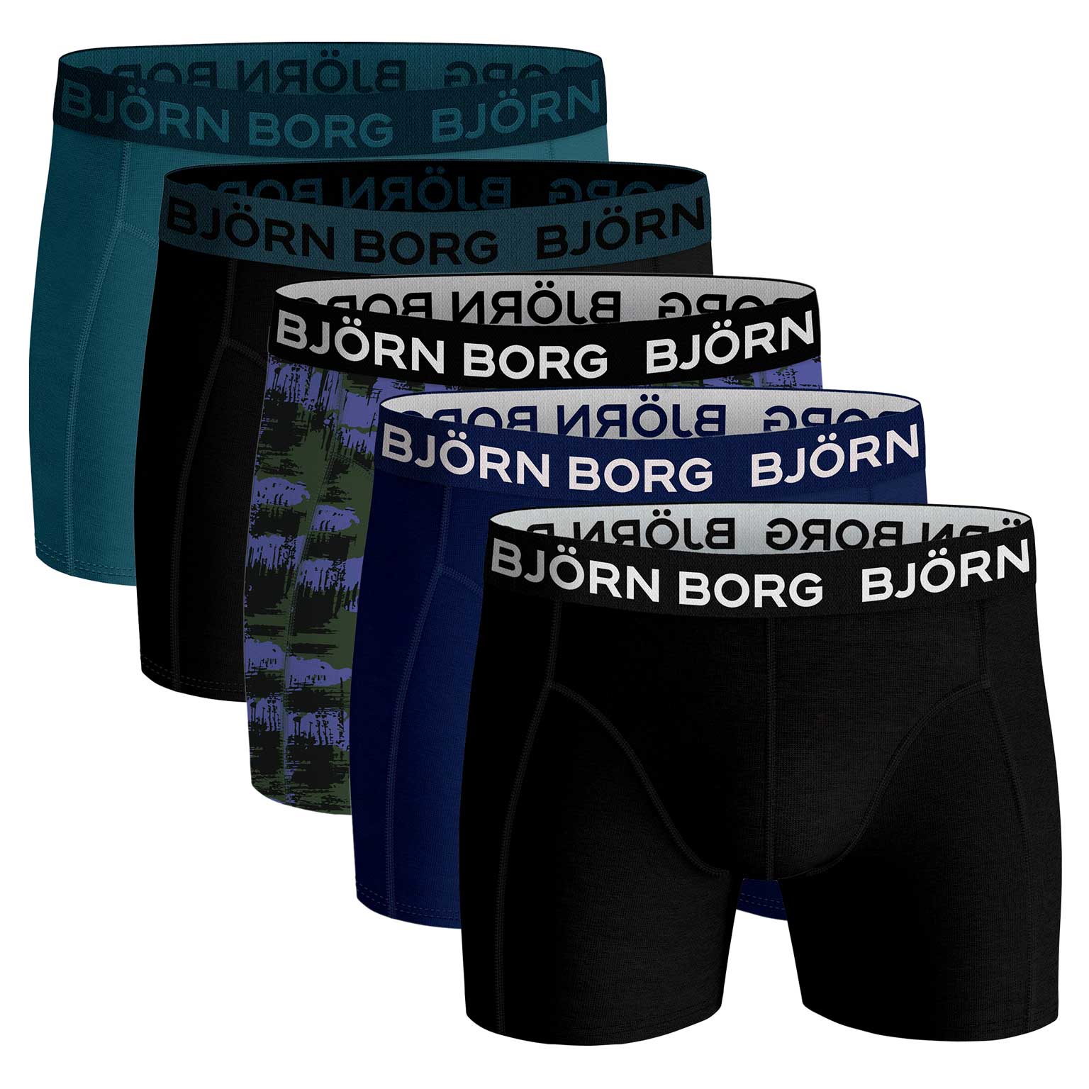 Lot avantageux de cinq shorts de la collection 'Essential Coton' de Björn Borg. Les sous-vêtements de cette série sont, comme le nom l'indique, fabriqués en coton stretch. Grâce à ce tissu premium les shorts sont ultra doux et extensible de qualité; à porter au quotidien! Les shorts ont une coupe parfaite avec une taille mi-haute et des jambes mi-longues. L'ensemble se compose de quelques boxers en couleurs unies et un ou deux avec un imprimé graphique.