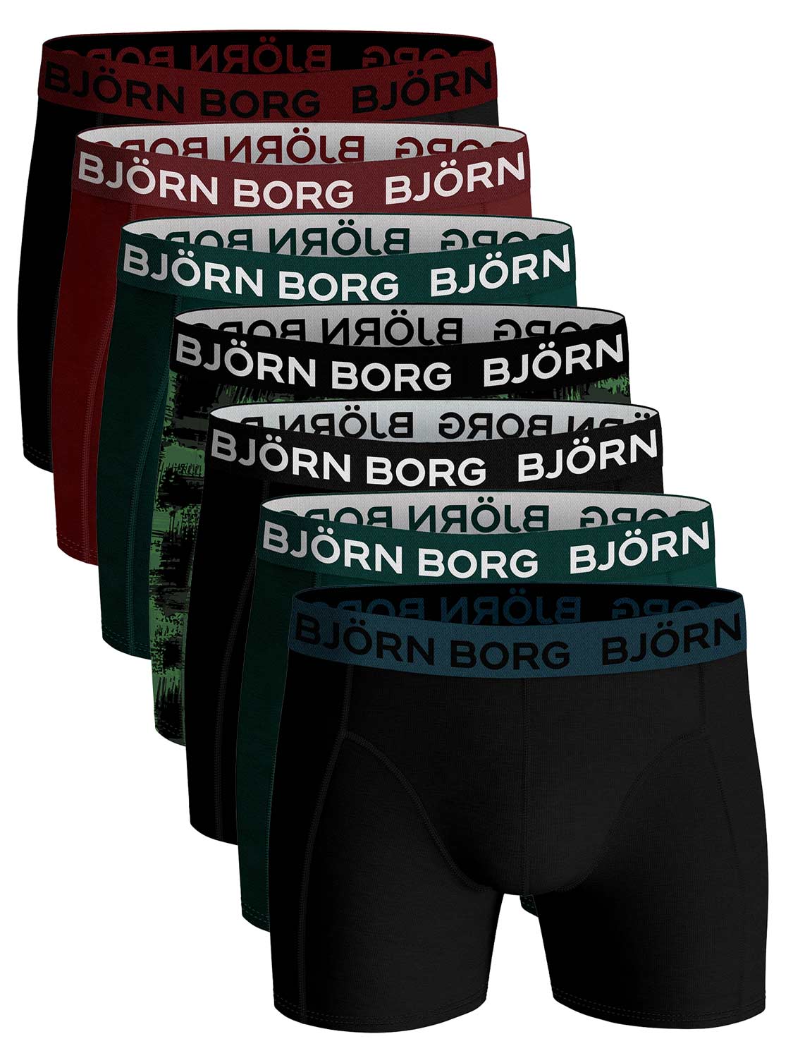 Lot avantageux de sept shorts de la collection 'Essential Coton' de Björn Borg. Les sous-vêtements de cette série sont, comme le nom l'indique, fabriqués en coton stretch. Grâce à ce tissu premium les shorts sont ultra doux et extensible de qualité; à porter au quotidien! Les shorts ont une coupe parfaite avec une taille mi-haute et des jambes mi-longues. L'ensemble se compose de quelques boxers en couleurs unies et un ou deux avec un imprimé graphique.