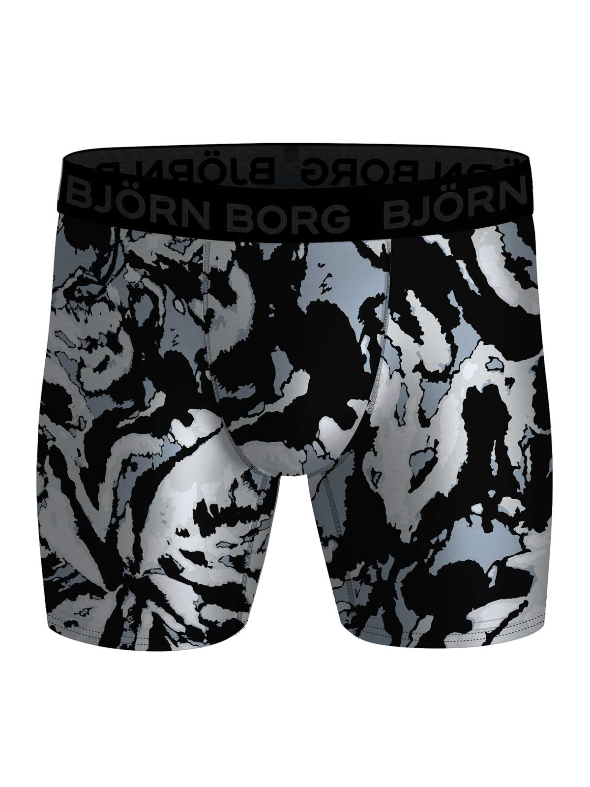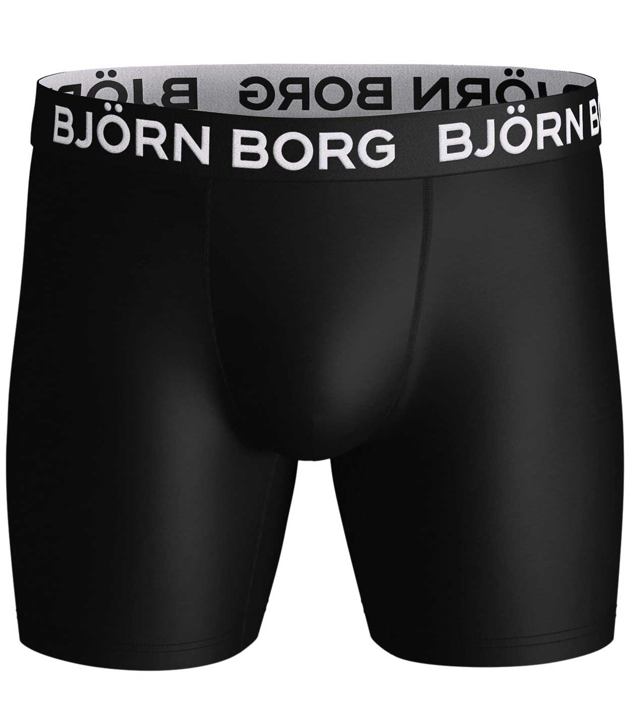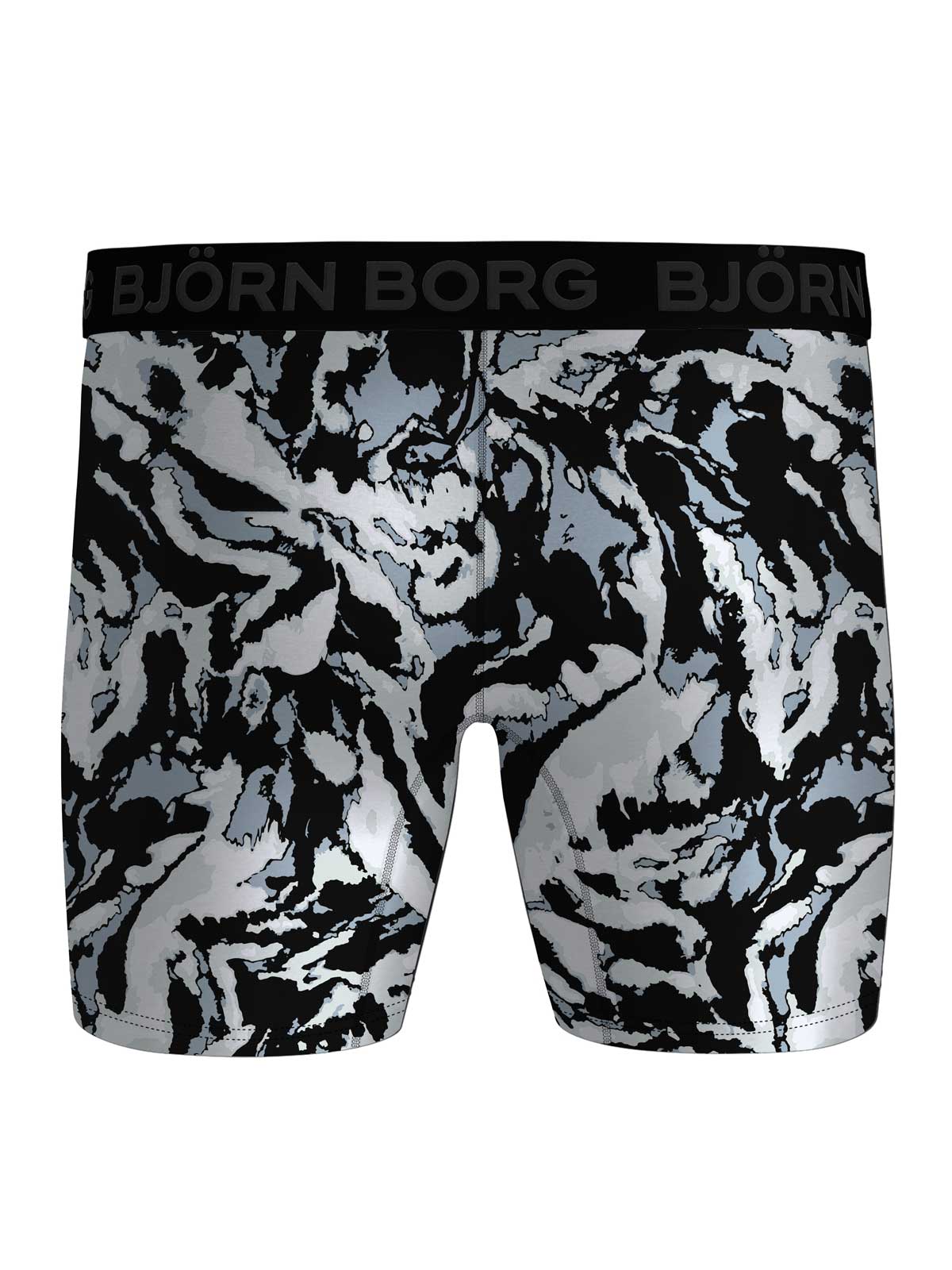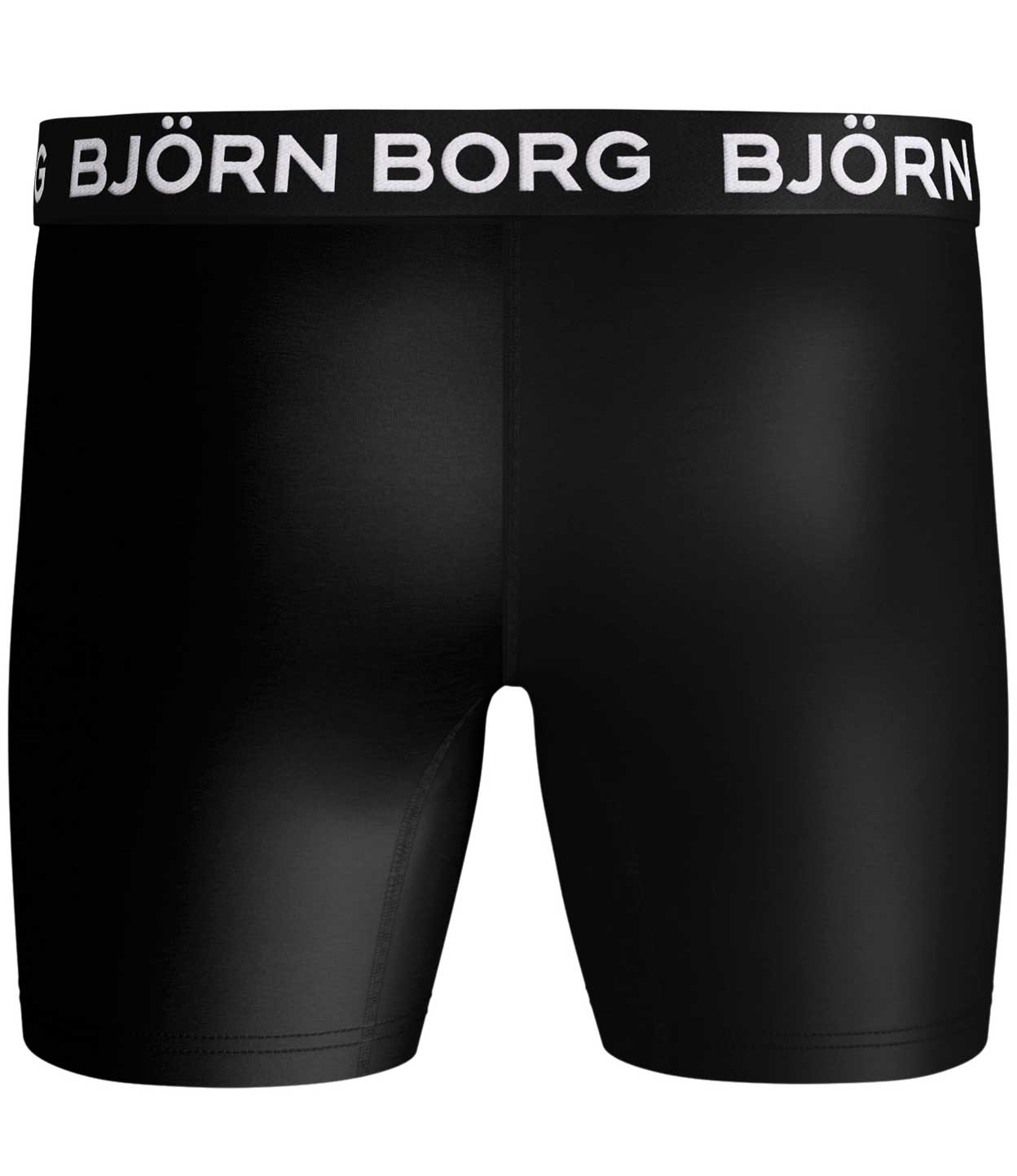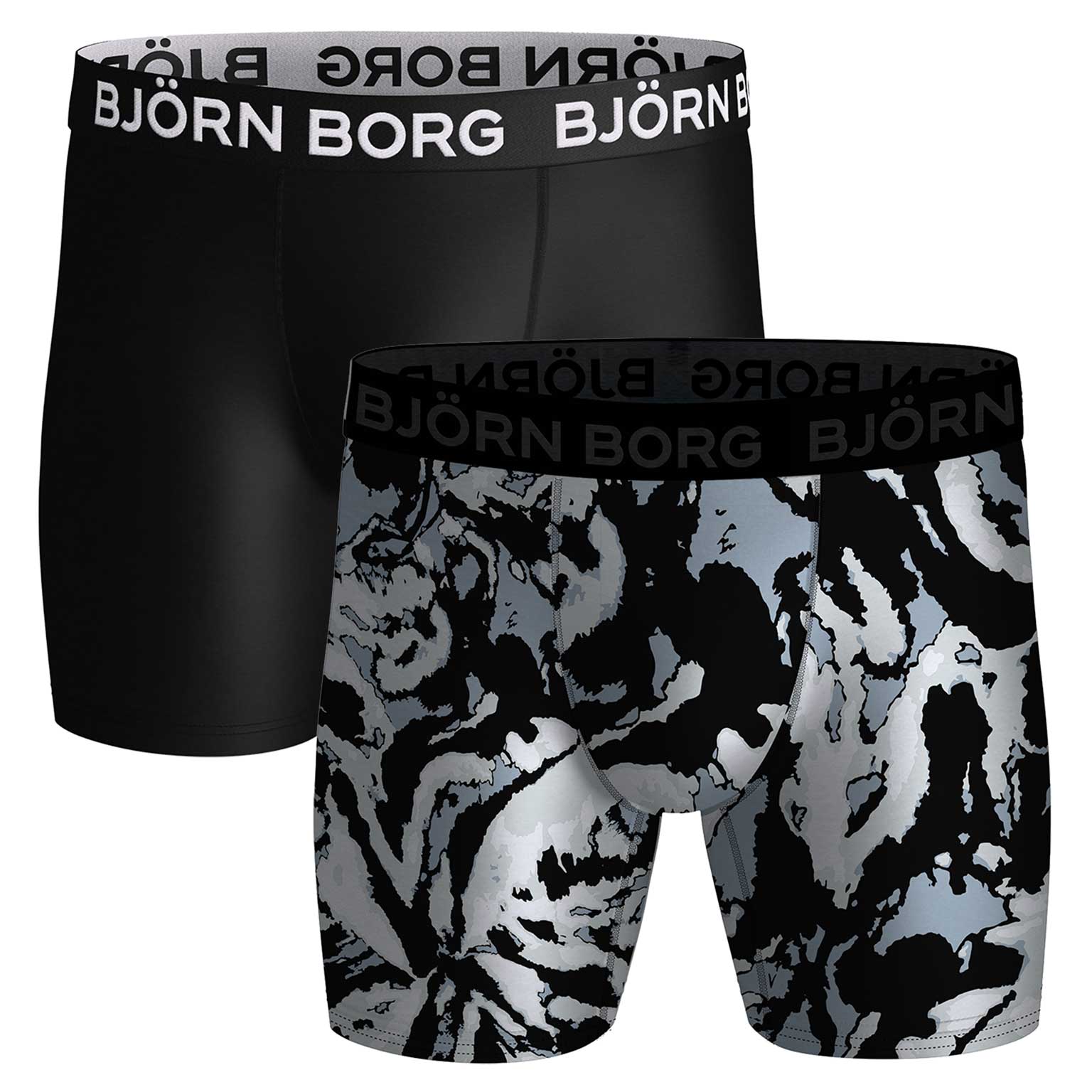 Lot pratique de deux shorts de la collection 'Performance' de Björn Borg. Les sous-vêtements de cette série sont fabriqués en polyester recyclé. Grâce à ce tissu de qualité doux et extensible qui évacue l'humidité, les shorts sont parfaits pour les hommes sportifs. Leur coupe et coutures fines vous garantissent des performances optimales. L'ensemble se compose d'un boxer en couleur unie et un avec un imprimé graphique.