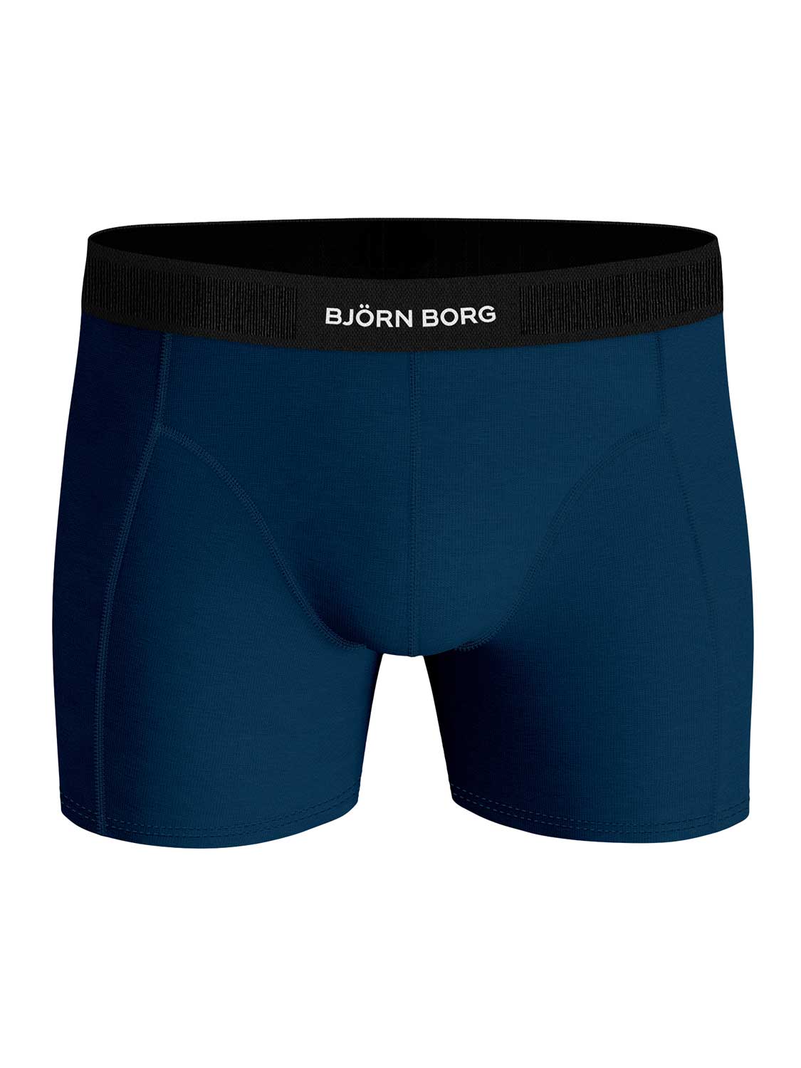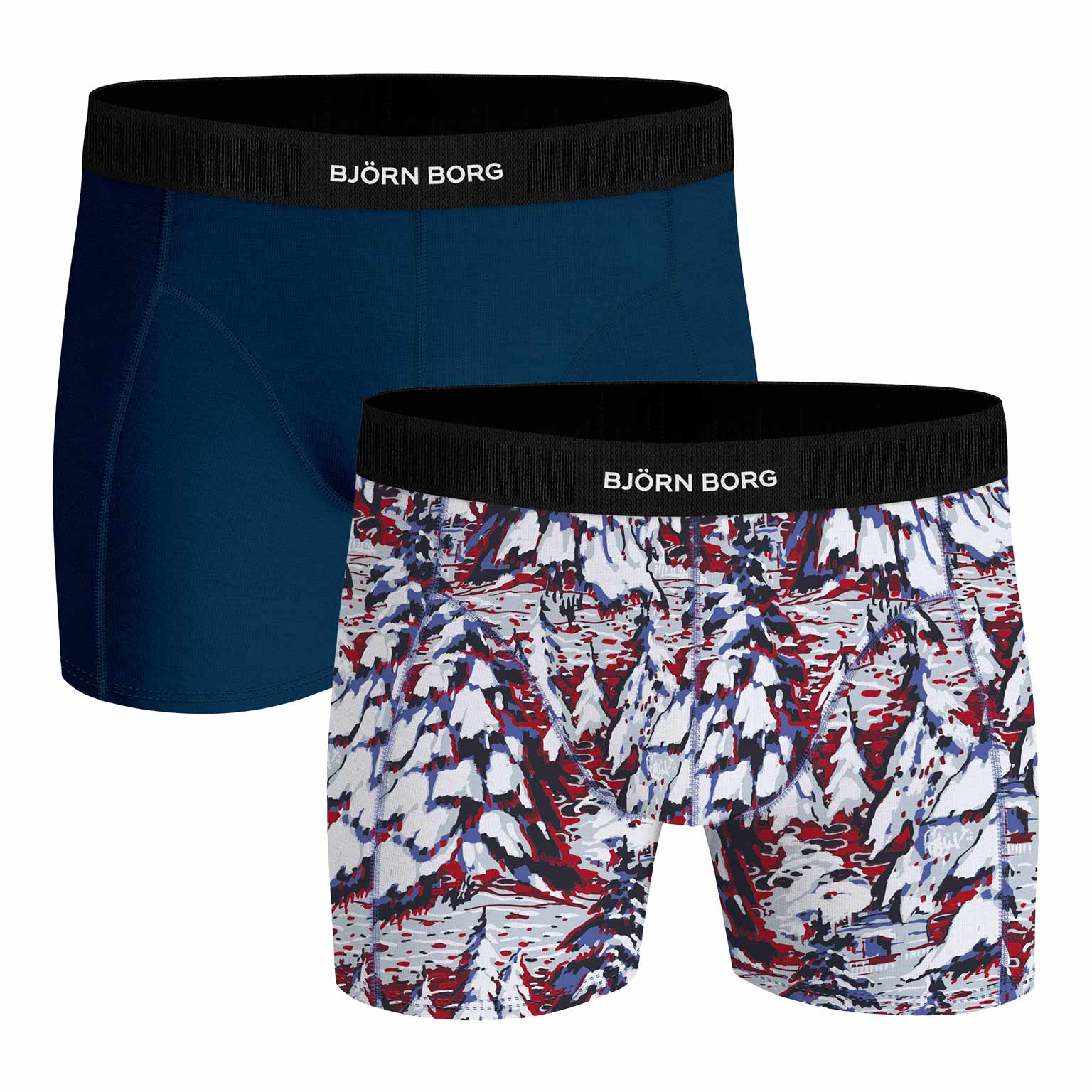Lot pratique de deux shorts de la collection 'Premium Coton' de Björn Borg. Les sous-vêtements de cette série sont fabriqués en coton à fibres longues. Grâce à ce tissu de qualité premium et un empiècement à l’entrejambe, les shorts sont ultra doux et extensibles. Ils garantissent un ajustement parfait et une plus grande longévité. L'ensemble se compose de un boxer en couleur unie et un avec un imprimé graphique.