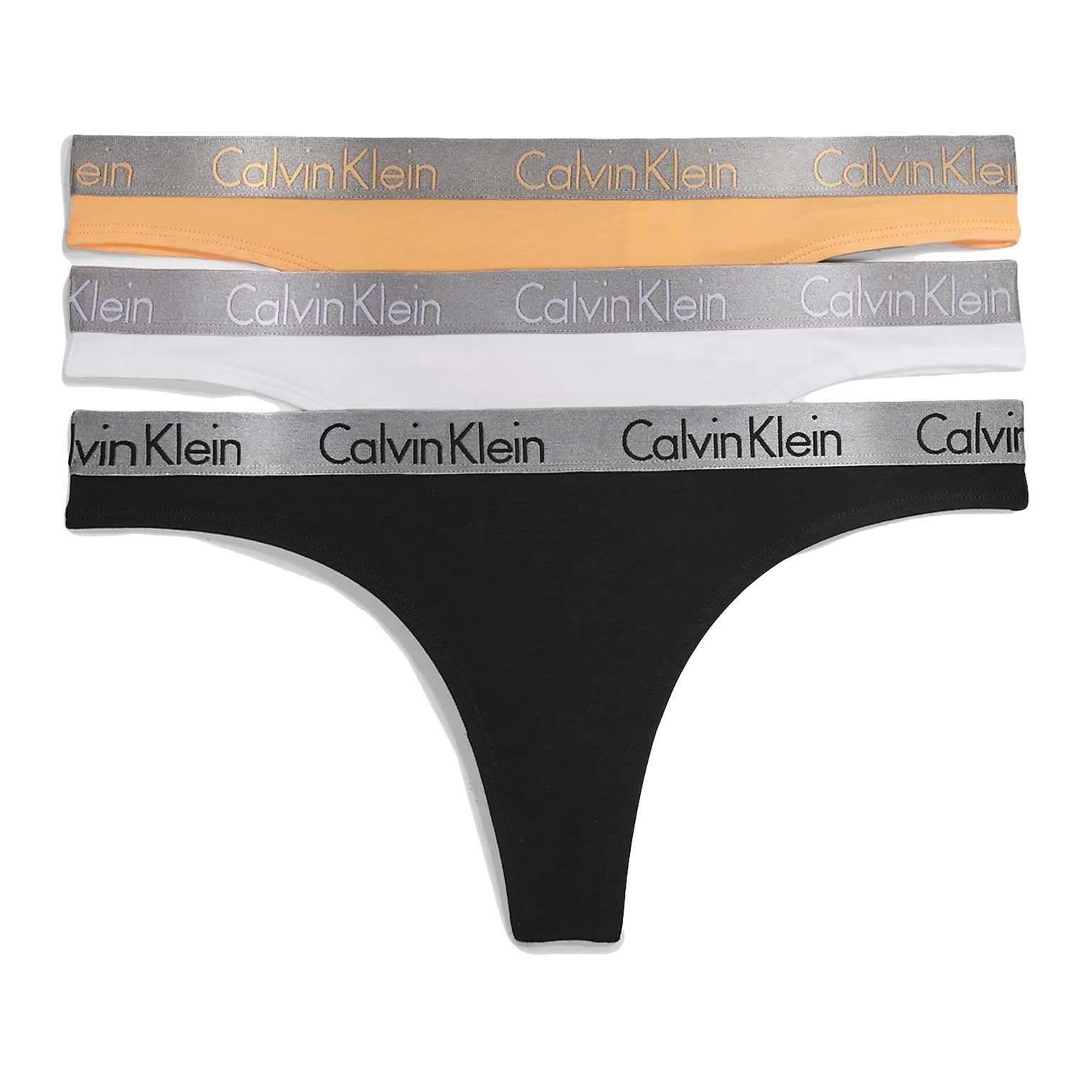 Trois strings pour femmes de couleur unie avec une ceinture contrastante de Calvin Klein dans un pack avantage, fabriqués en coton stretch doux qui est agréable sur la peau. La ceinture comporte le logo Calvin Klein. Les multipacks sont disponibles en deux combinaisons de couleurs.