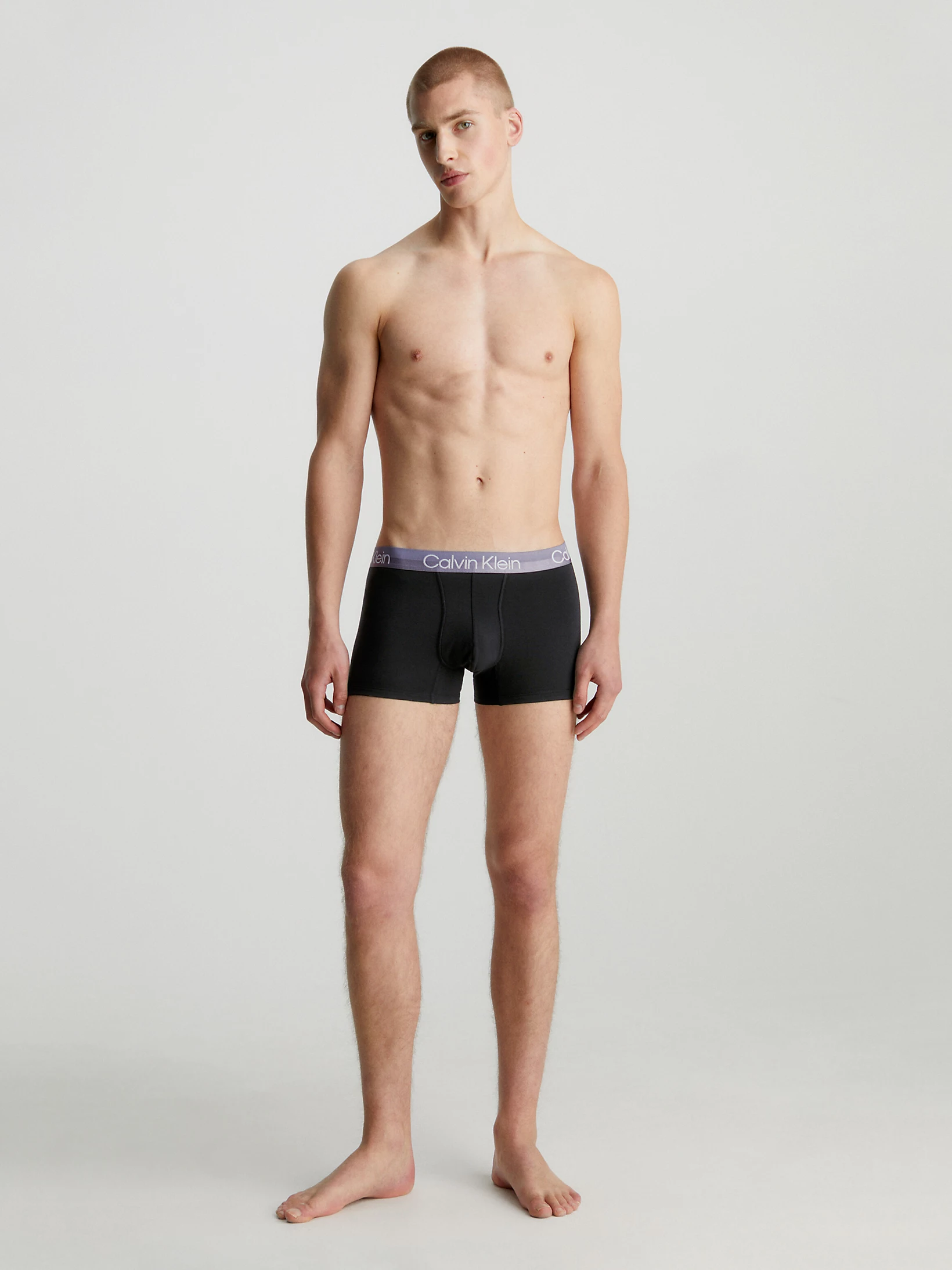 Les trunks Modern Structure sont fabriqués à partir d'un tissu spécial, un mélange de coton et de polyester recyclé, ce qui rend ces shorts plus durables que les shorts classiques. Et tout cela sans compromettre le confort. Grâce au mélange unique de coton et de polyester, le Modern Structure est merveilleusement doux et s'adapte confortablement à la peau. Lorsque vous portez le Modern Structure, vous ressentez une sensation de luxe. La ceinture avec le logo Calvin Klein a une finition mate moderne, complétant le design. Le Modern Structure porte bien son nom. Un multipack avec 3 beaux boxers de Calvin Klein.