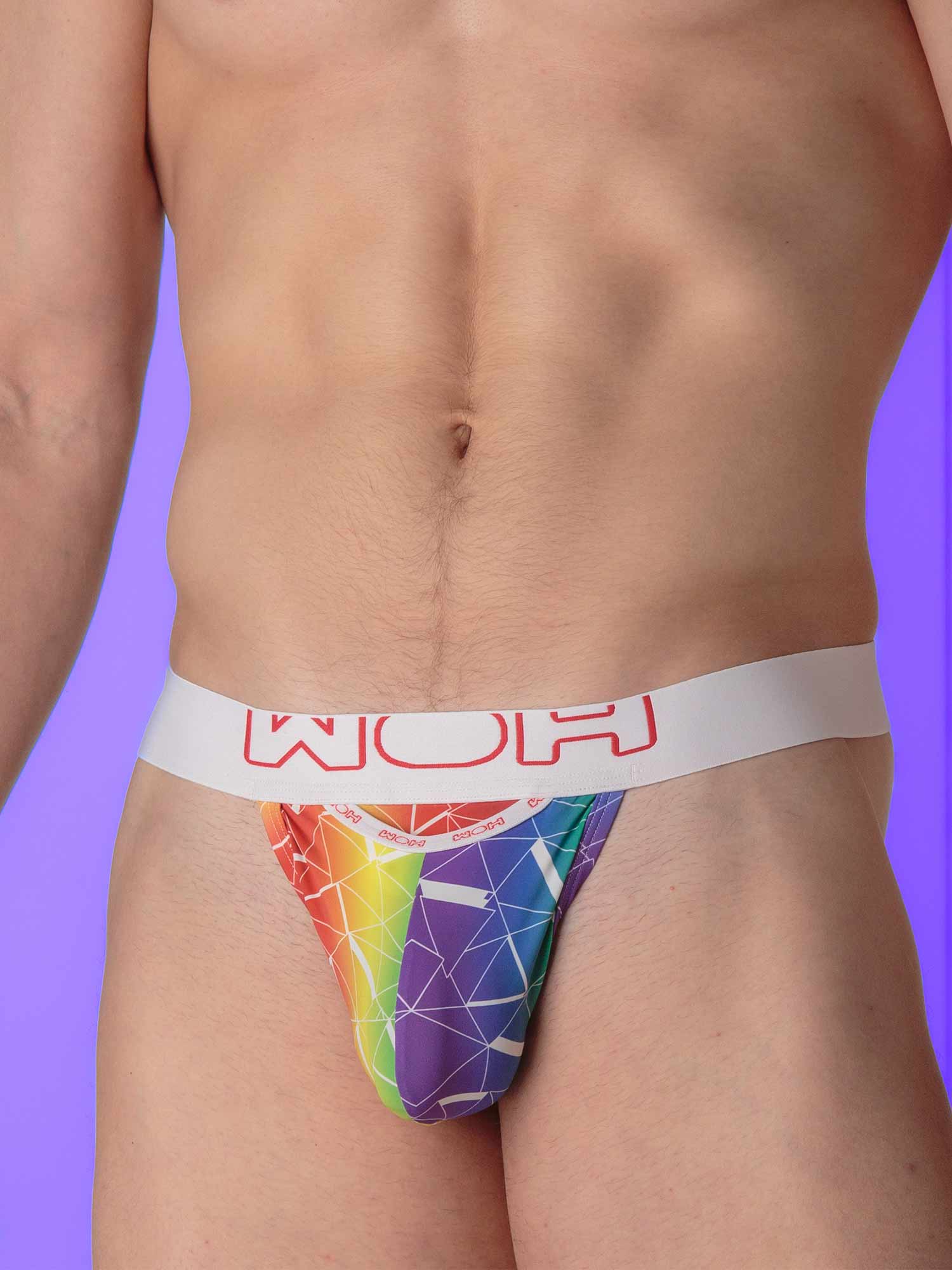 Le G-String Sexy Fun de WOH est une pièce audacieuse et colorée incontournable. L’imprimé arc-en-ciel associé à la ceinture blanche sportive ornée du logo WOH rouge crée un look à la fois joyeux et sexy. Le string épouse la peau et offre juste ce qu’il faut de maintien tout en laissant entièrement libre l’arrière. La poche frontale préformée met en valeur ta virilité et assure un confort optimal.