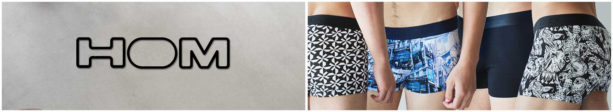 HOM est une marque qui est fondée en 1968 à Marseille, France. Depuis cette année, la marque n'a cessé de se positionner en tant que maître du marché de sous-vêtements pour hommes. La marque a voulu créer une collection seulement pour hommes, pour leur apporter la meilleure qualité. C'est grâce à cet objectif principal que HOM recherche constamment des innovations pour assurer un maintien et un confort inégalable.