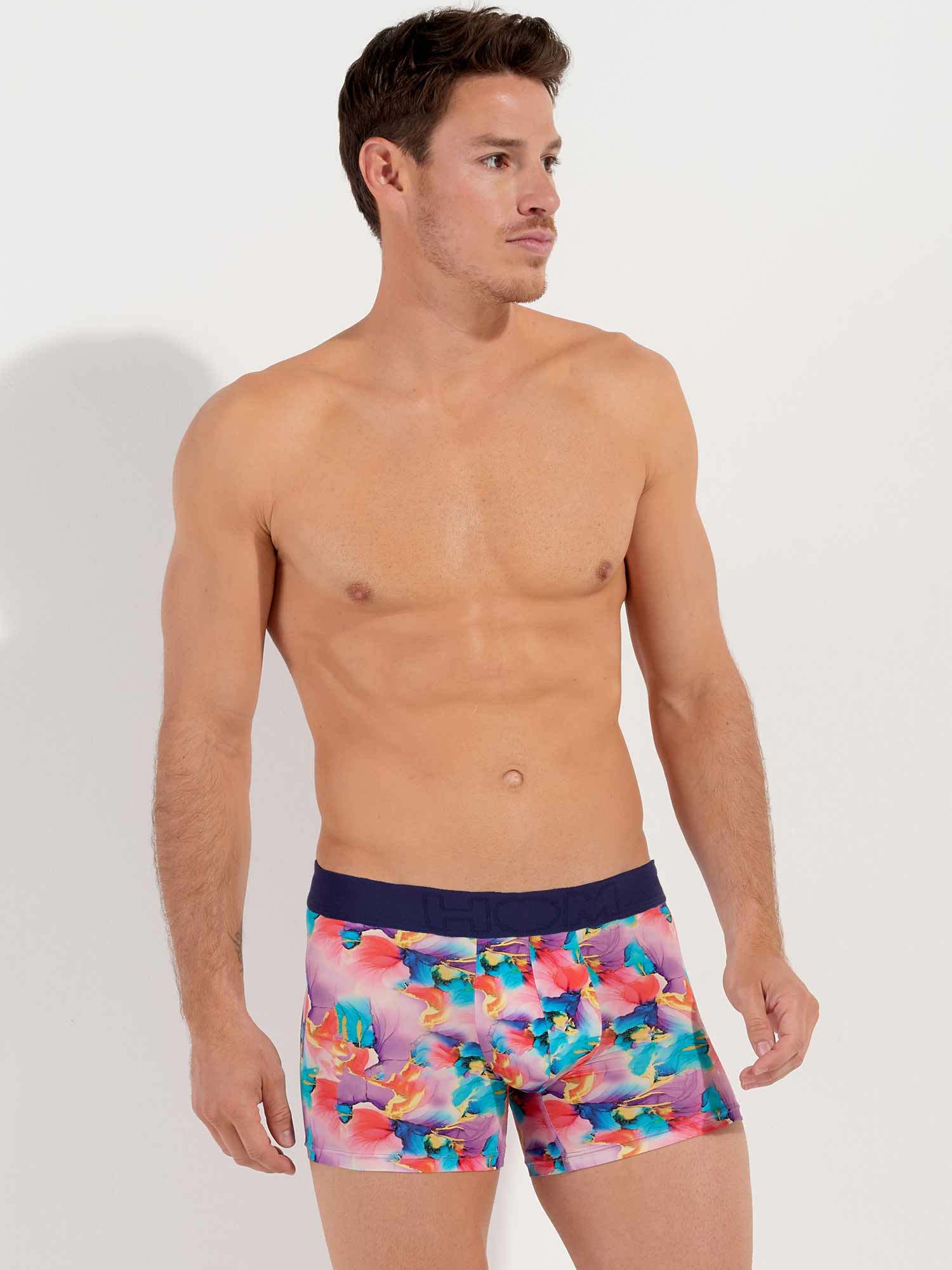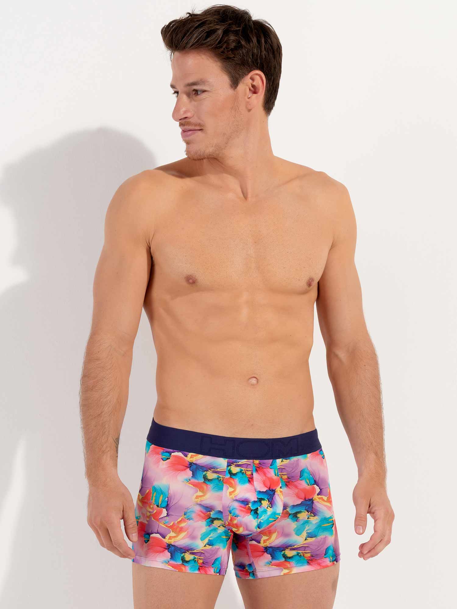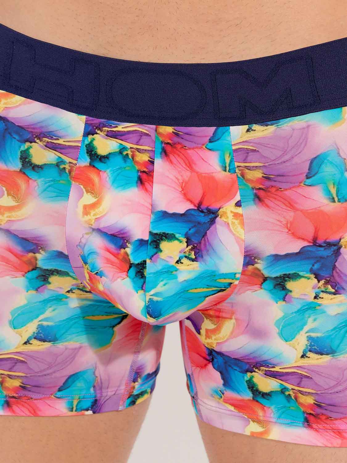 Les Aquaflowers - Boxer Briefs sont une addition colorée à la ligne Temptation. Ces boxers sont confectionnés dans un tissu en microfibre fin (similaire aux plumes), offrant un ajustement confortable comme une seconde peau. Contrairement aux trunks que l'on trouve habituellement dans la ligne HOM Temptation, les Aquaflowers sont un modèle boxer briefs avec des jambes plus longues et une large ceinture. L’imprimé en nuances pastel douces de turquoise et de rose évoque une sensation de douceur et de sensualité. Commencez le jeu de la séduction avec cette magnifique nouveauté de la ligne Temptation.
