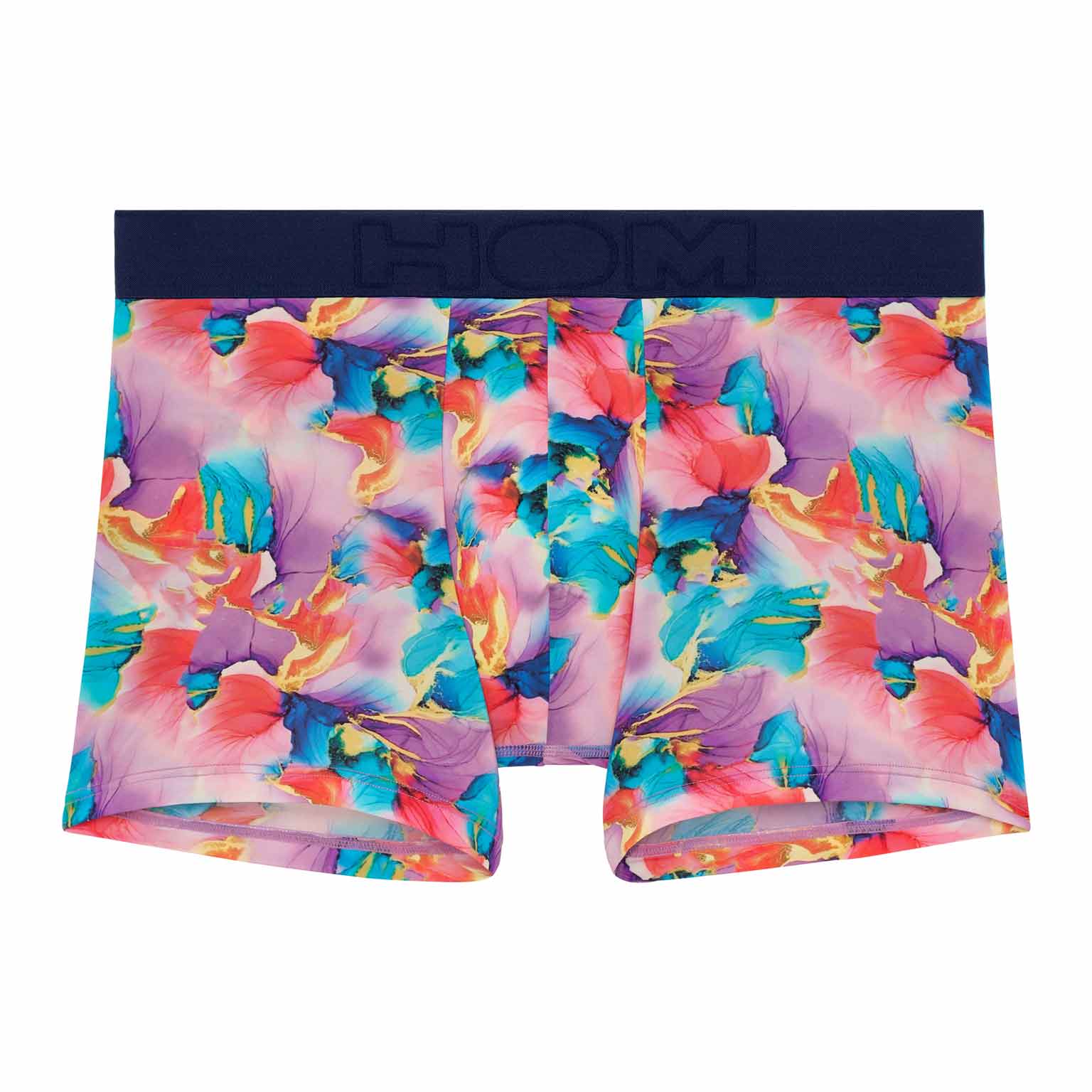 La ceinture, en bleu marine avec le logo HOM autour, complète parfaitement ce boxer.