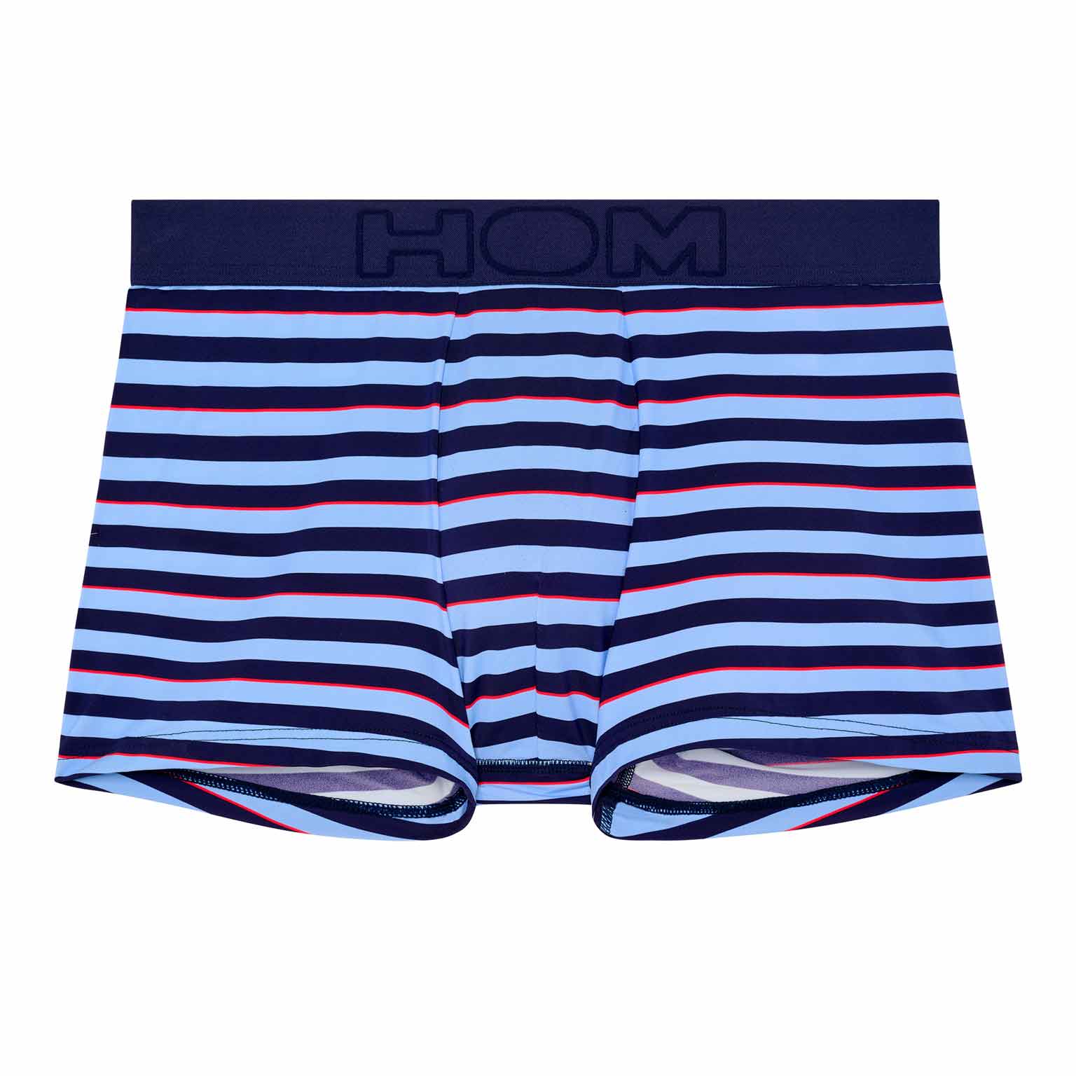Le boxer HOM Atlantic affiche un style marin audacieux avec des rayures navy bleu et rouge, inspirées de l’univers de la mer et de la voile. Confectionné en microfibre lisse et légère, il est doux sur la peau et garde parfaitement sa forme. L’élastique intérieur à l’avant apporte un maintien confortable, tandis que la finition voile en bas de jambe aide à éviter que le boxer ne remonte et conserve une ligne élégante. Le tout est complété par une ceinture sans couture HOM et une étiquette d’entretien détachable pour plus de confort.