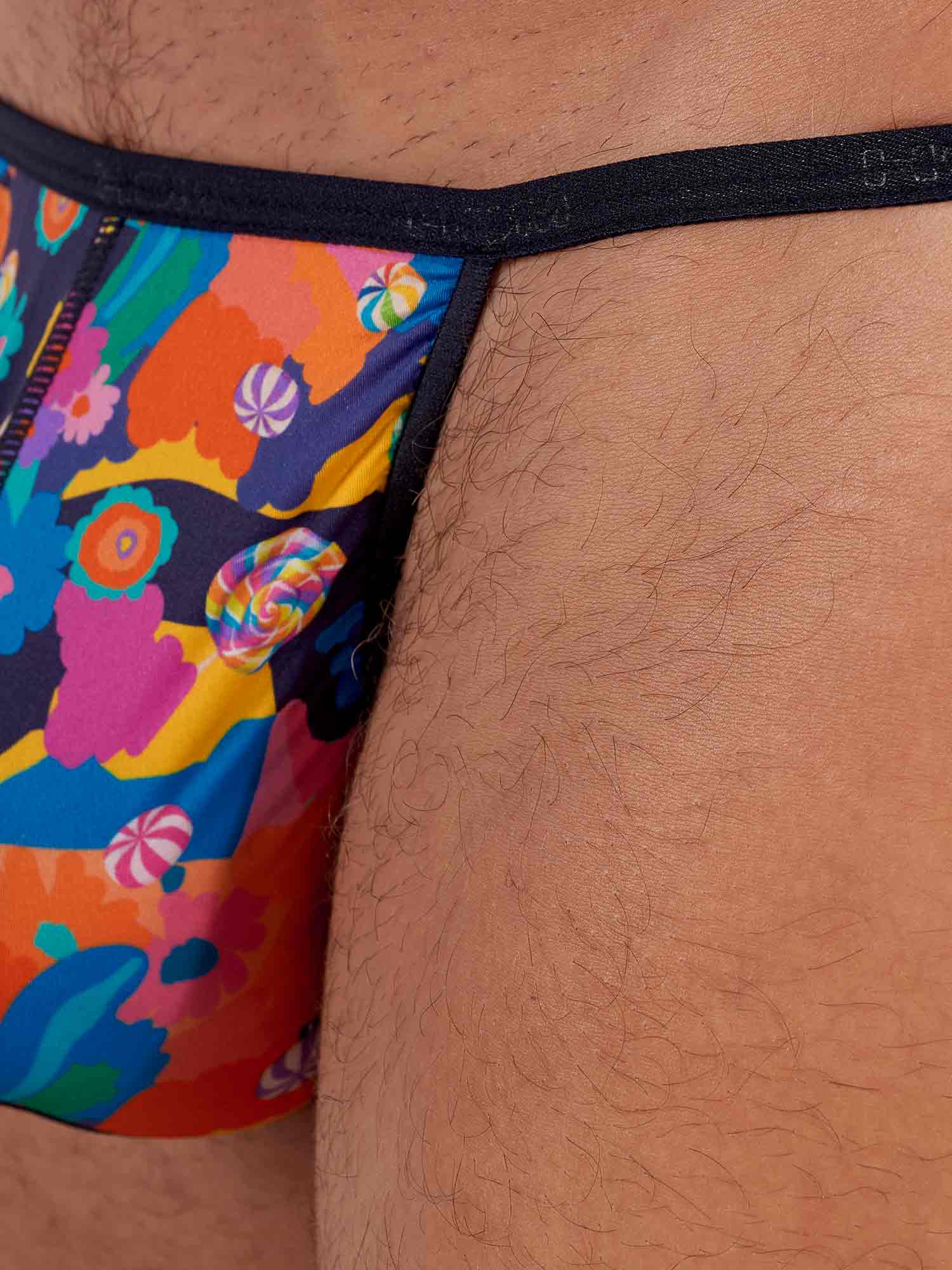 Le string Wonka de la collection HOM Temptation est conçu pour la séduction avec une touche de fantaisie. La microfibre ultra légère, identique à celle des modèles Plume de HOM, épouse le corps comme une seconde peau. L’imprimé coloré de bonbons et de fleurs psychédéliques apporte une allure audacieuse et accrocheuse. Une coupe provocante pour les hommes en quête de minimalisme et d’effet maximal.