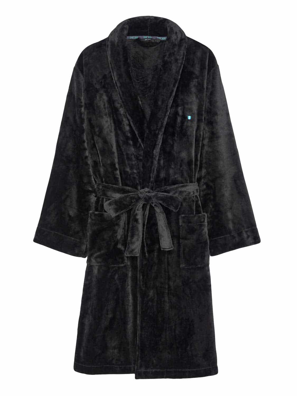 La Nice est une robe de chambre d'HOM qui est réalisée en 100% de polyester. Voilà pourquoi il est hyper doux et régule bien la température pour vous garder bien au chaud, donc il est parfait pour une soirée de détente. La robe de chambre a une allure chic grâce à la profondeur de la couleur noire qui est renforcée par les jeux de lumière que permet la surface de la matière polaire dont elle est composée. Notez que le polyester n'absorbe pas bien l'eau donc ce peignoir n'est pas le meilleur choix pour une visite au sauna/à la piscine.