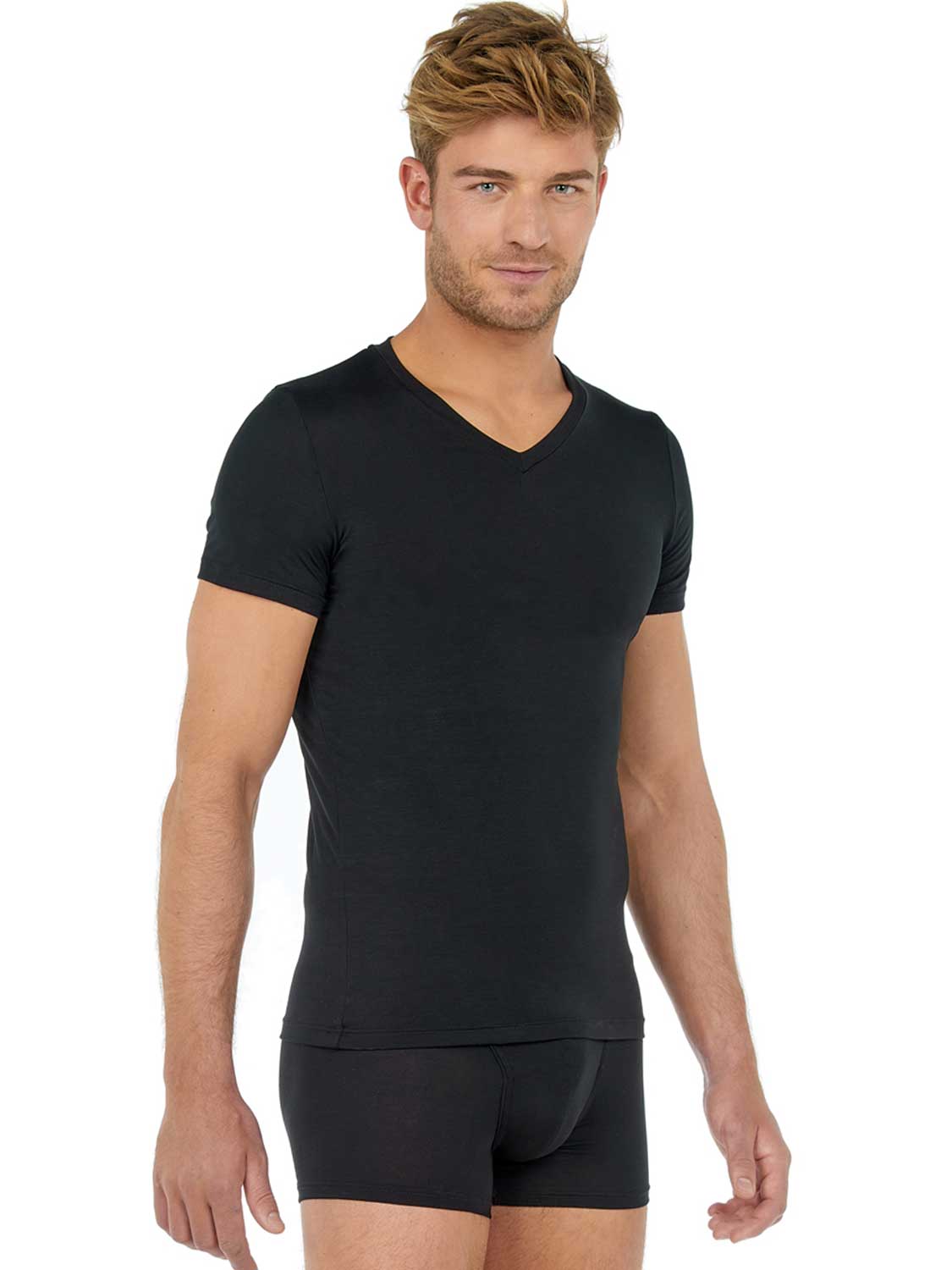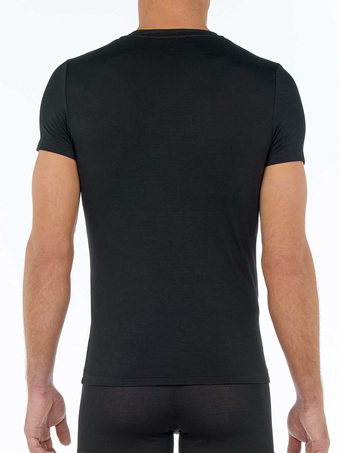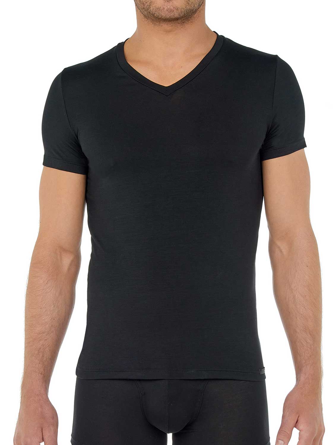 T-Shirt V-Neck qui fait partie de la collection Tencel Soft. Les sous-vêtements de cette ligne  d'HOM sont réalisé en lyocell avec un peu d' elasthanne. Grâce à cette matière d'orgine naturelle, les shirts et boxers ont le moins d'impact possible sur l'environnement. De plus, les sous-vêtements de cette collection sont très absorbantes, ils résistent bien aux frottements et ils garantissent un confort absolu.