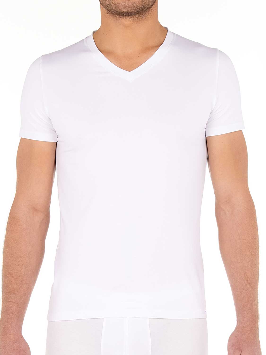 T-Shirt V-Neck qui fait partie de la collection Tencel Soft. Les sous-vêtements de cette ligne d'HOM sont réalisé en lyocell avec un peu d' elasthanne. Grâce à cette matière d'orgine naturelle, les shirts et boxers ont le moins d'impact possible sur l'environnement. De plus, les sous-vêtements de cette collection sont très absorbantes, ils résistent bien aux frottements et ils garantissent un confort absolu.