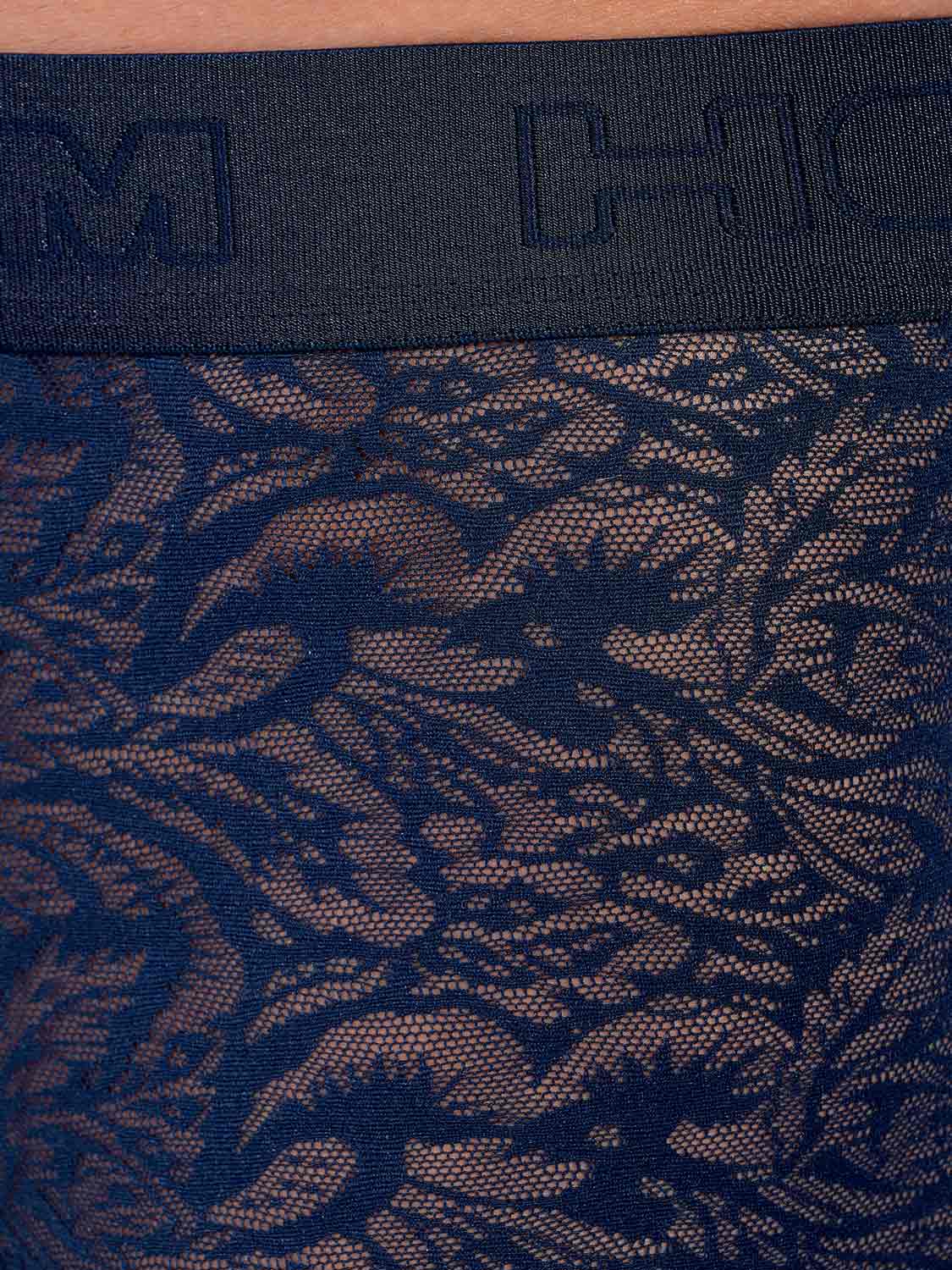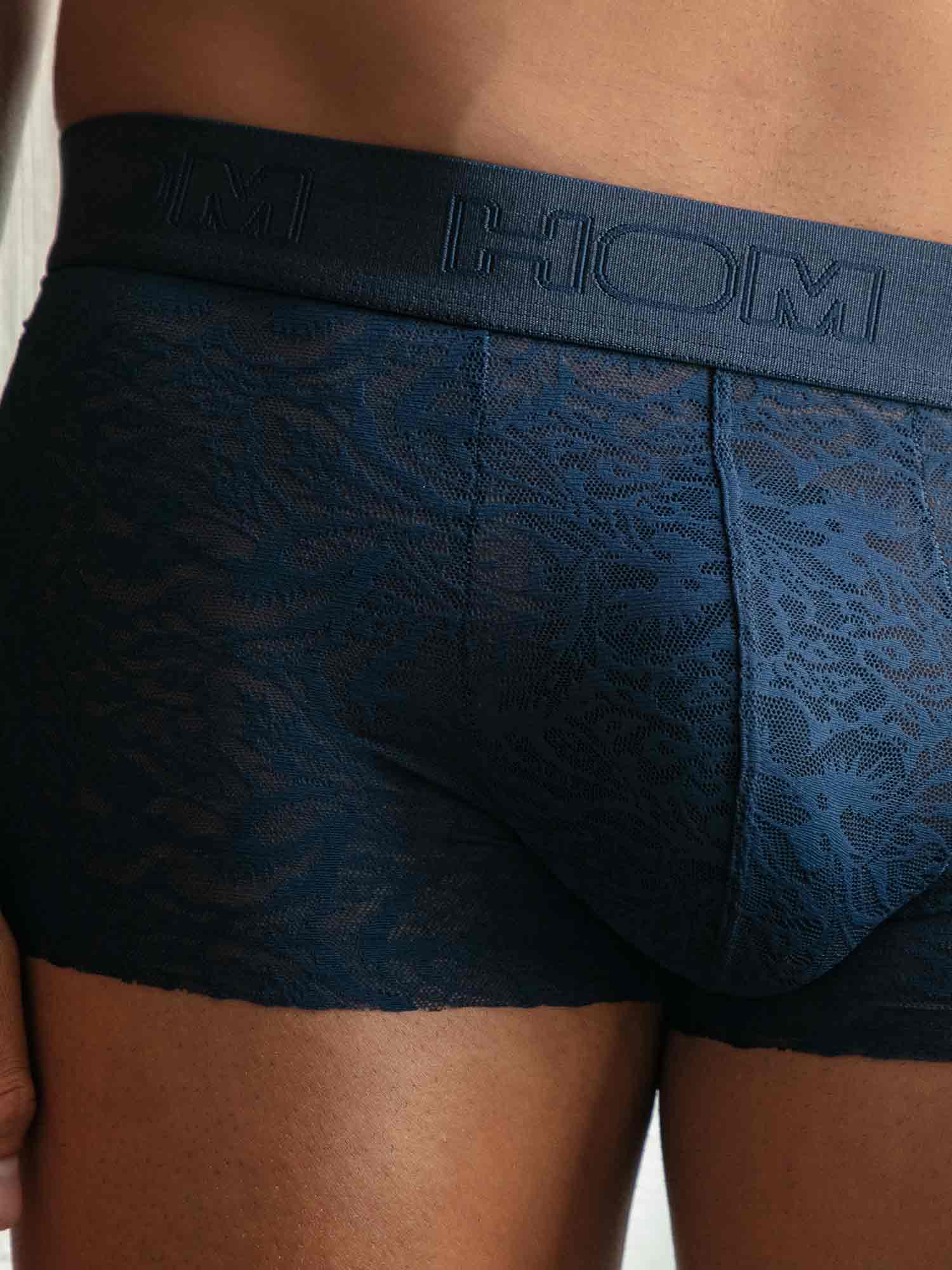 Le Free Cut Lace - Trunk est une addition sensuelle à la ligne HOM Temptation. Le Free Cut Lace est fabriqué en maille élégante avec un magnifique motif de feuilles, te donnant l'impression d'être sous les tropiques. Le tissu transparent joue érotiquement avec la peau pour un effet sensuel. Et grâce à la technologie freecut, le tissu n'a pas besoin d'être fermé par une couture au niveau des jambes.