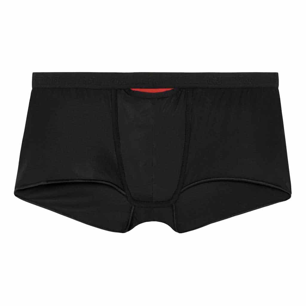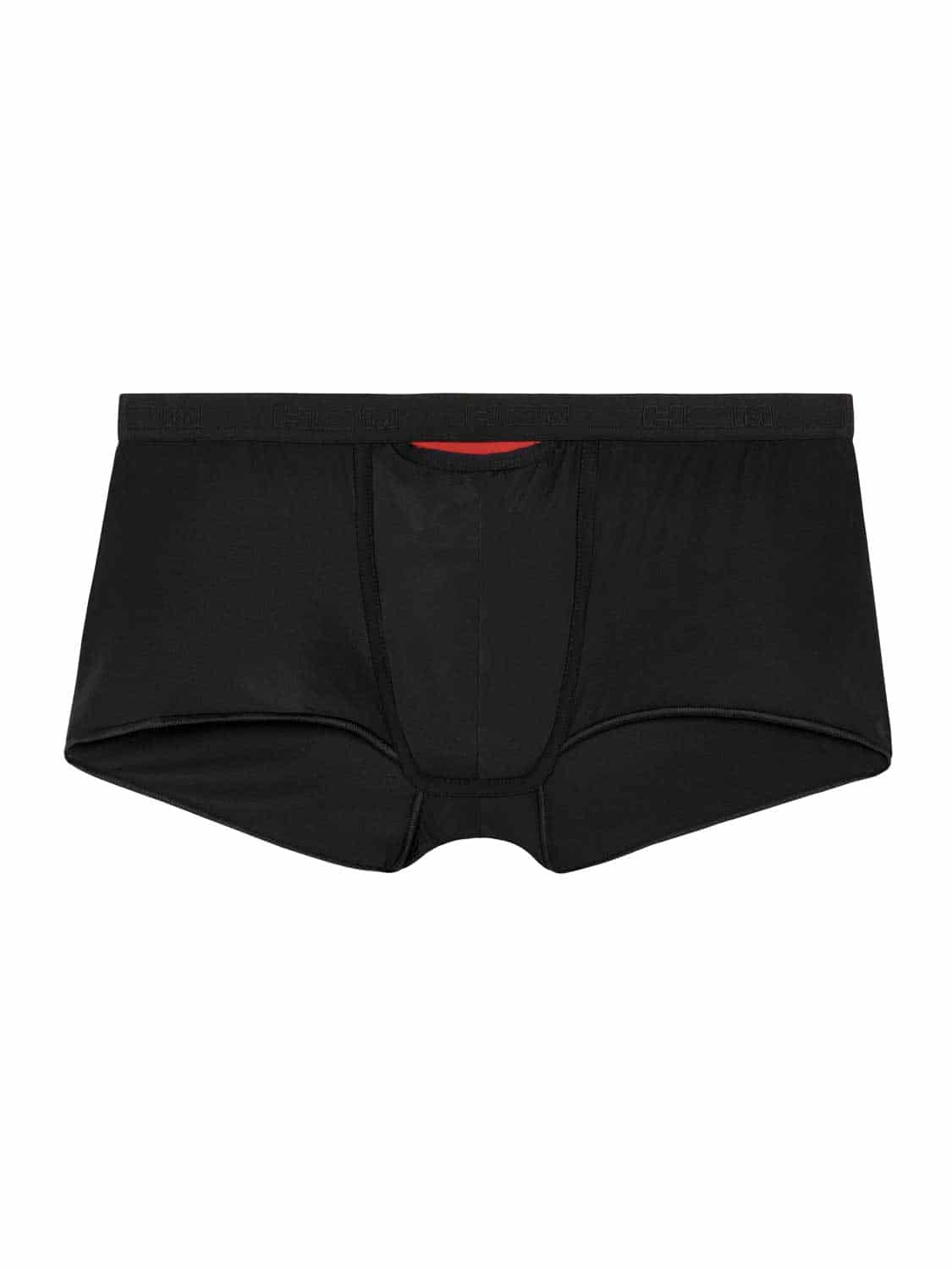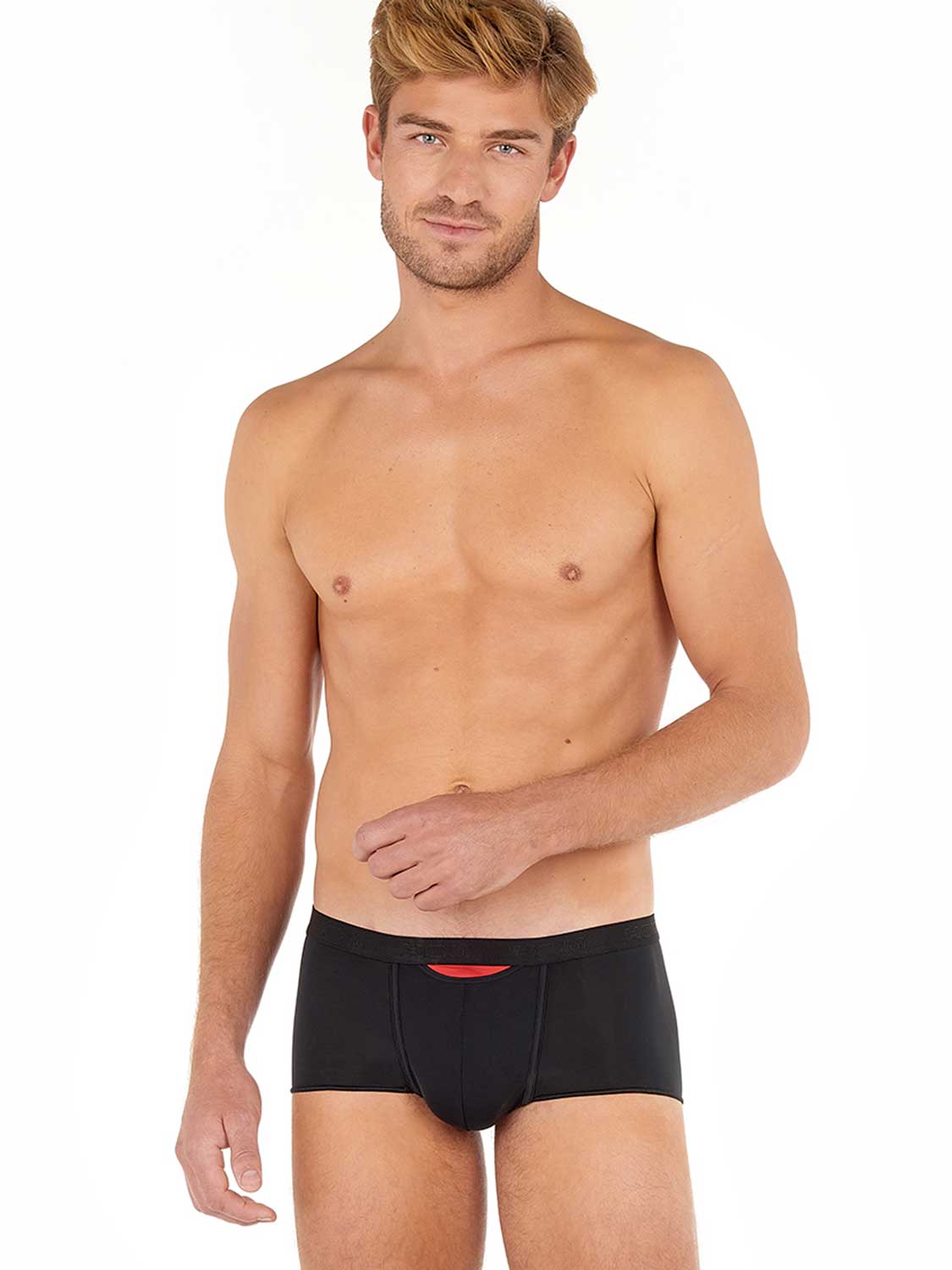 The Trunk HO1 - Plume Up is a plumes trunk with a horizontal opening! The Plumes is made from soft and light microfiber for ultimate wearing comfort. This unique version is temporarily available in solid colors blue, red, black, and orange. The shorts feature narrow lines in a contrasting color, giving them a modern retro look. In addition to the Horizontal Fly, these trunks also have a "push-up" pouch at the front, which enhances support for extra comfort and subtly emphasizes the male anatomy. The elastic waistband is wider than the regular plumes and features the HOM logo on the band.