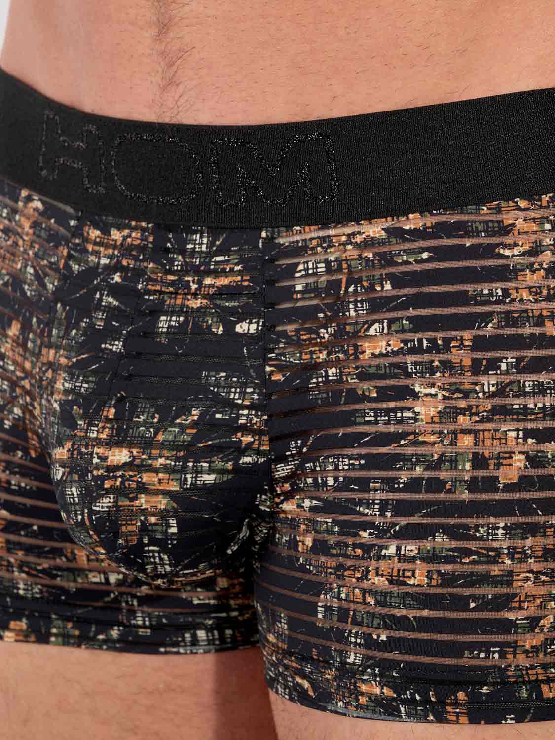 Le trunk Iraty de la collection HOM Temptation est un chef-d'œuvre de séduction subtile. Il associe un motif camouflage sensuel en vert, ocre et noir à des détails floraux qui intriguent et attirent le regard. Les lignes transparentes horizontales laissent entrevoir juste ce qu’il faut de peau pour un effet visuel captivant, tandis que la microfibre douce comme du velours épouse le corps en toute légèreté. La poche doublée assure confort et discrétion. Le trunk Iraty est conçu pour les hommes qui osent séduire avec style et assurance.
