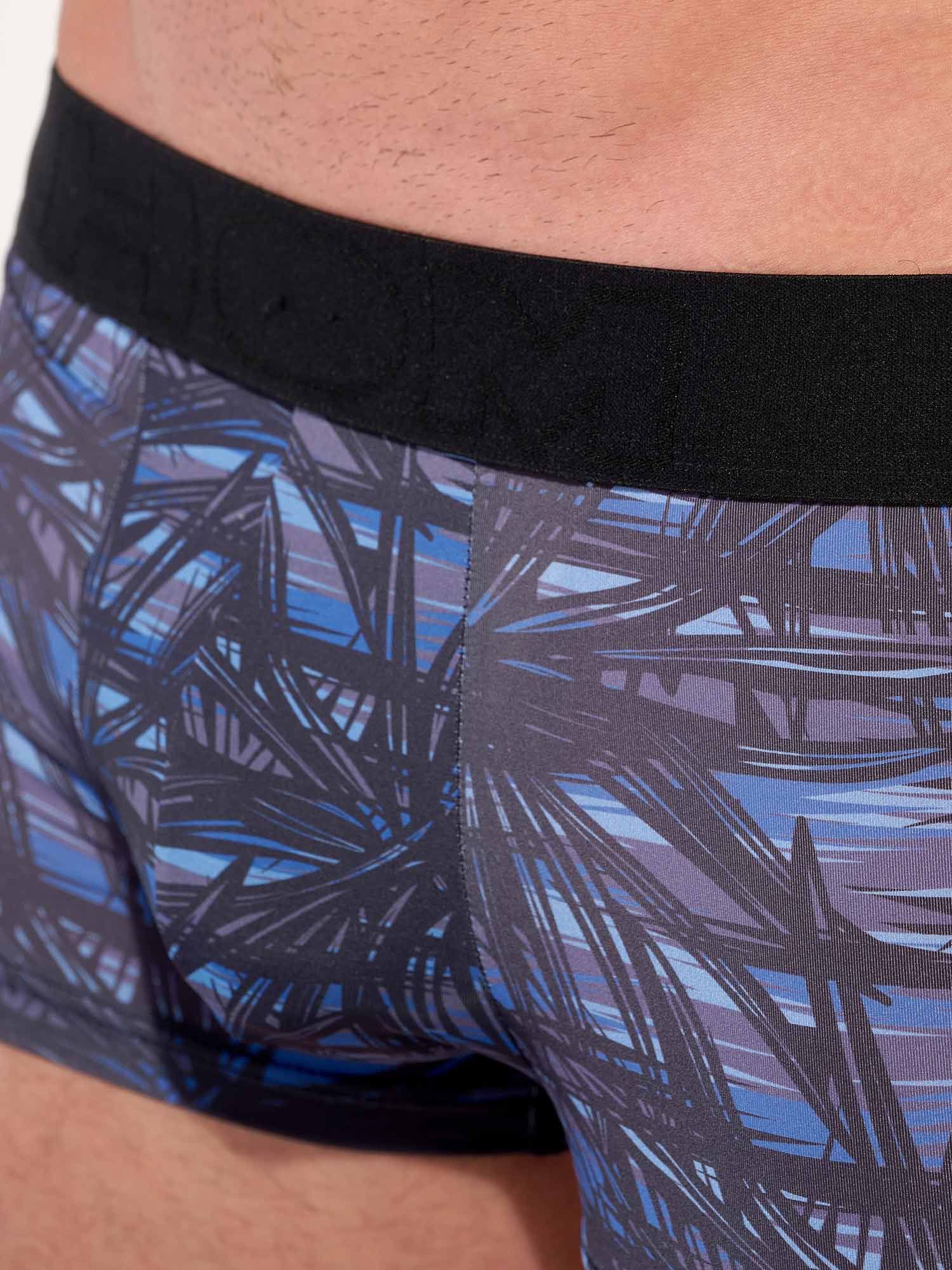 Le trunk HOM Star Island insuffle l’énergie de Las Vegas la nuit dans une silhouette Temptation ultra élégante. De grands motifs de palmes noirs se déploient sur un fond de rayures bleues superposées, pour un contraste saisissant, moderne et naturellement luxueux. Sa coupe trunk courte épouse le corps et offre un maintien sûr, tandis que la finition de jambe semi transparente ajoute une touche subtilement sensuelle. La ceinture sans couture garde des lignes impeccables sous les vêtements, et l’étiquette d’entretien détachable apporte un confort supplémentaire. Complétez le look avec le T-shirt assorti pour un ensemble parfaitement coordonné.