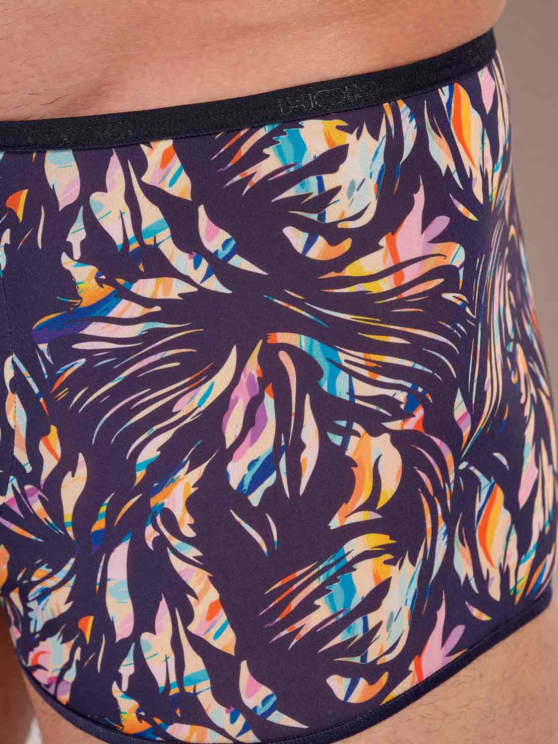 Le trunk HOM Viscaye associe l’élégance raffinée de Temptation à une sensation presque imperceptible. Un fresco floral harmonieux aux tons pastel se déploie sur une base bleu marine riche, pour un look délicat et exotique qui reste naturellement masculin. Confectionné dans une microfibre ultra fine qui épouse le corps comme une seconde peau, il reste lisse et confortable grâce à ses bords élastiqués doux. Résultat, un trunk presque invisible sous les vêtements près du corps, à l’image de la série iconique Plumes, et une ceinture finie par un logo HOM incrusté pour une touche de luxe discrète.