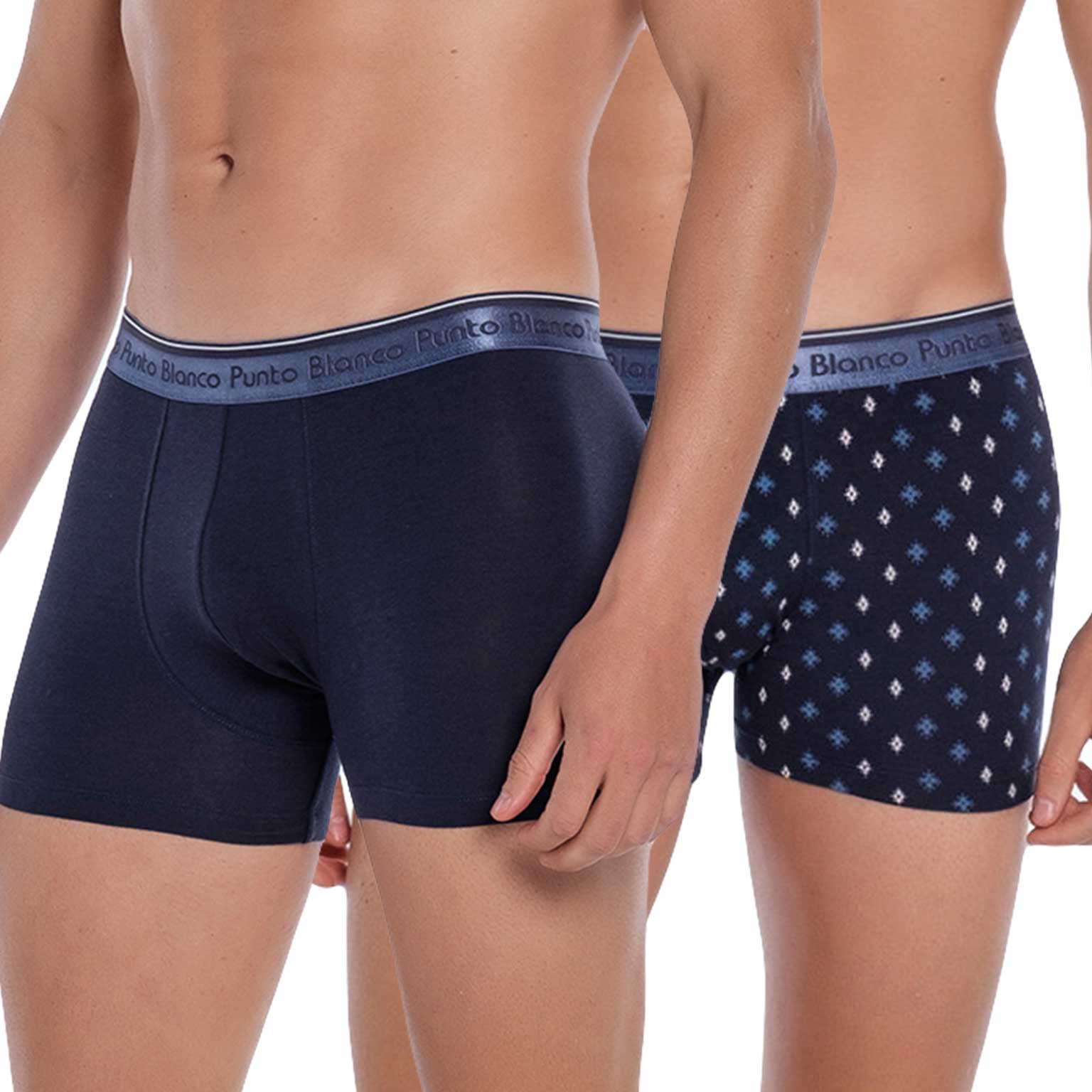 Lot pratique de deux boxer briefs de Punto Blanco. Les boxers sont fabriqués en coton modal avec un peu d'élasthanne. Voilà pourquoi le tissu est respirant, absorbant et il vous donne une sensation seconde peau. Le lot 'Hill' se compose d'un boxer brief en couleur unie et un autre avec un imprimé graphique.