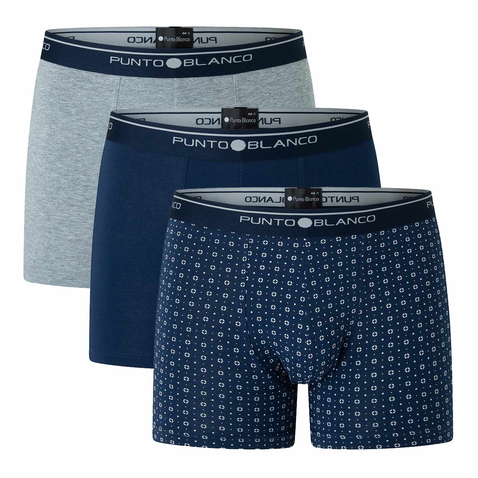 Lot pratique de trois boxer briefs qui font partie de la collection Basix de Punto Blanco. Les boxers de cette collection sont fabriqués en coton stretch de qualité supérieure et durable. Voilà pourquoi ils sont hyper doux, respirants et confortables à porter, jour après jour. Le lot se compose de trois boxer briefs dont deux en différentes couleurs unies et un avec un imprimé graphique.
