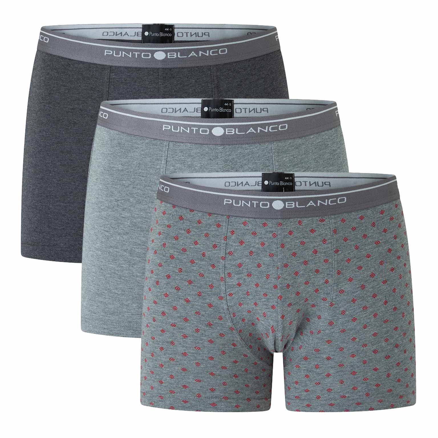 Lot pratique de trois boxer briefs qui font partie de la collection Basix de Punto Blanco. Les boxers de cette collection sont fabriqués en coton stretch de qualité supérieure et durable. Voilà pourquoi ils sont hyper doux, respirants et confortables à porter, jour après jour. Le lot se compose de trois boxer briefs dont deux en différentes couleurs unies et un avec un imprimé graphique.