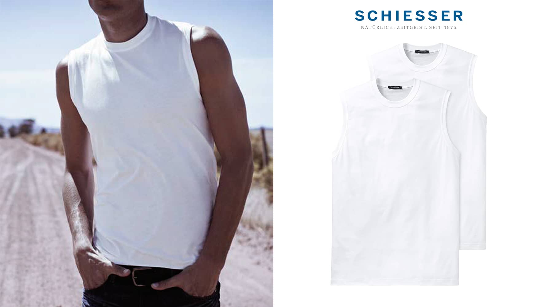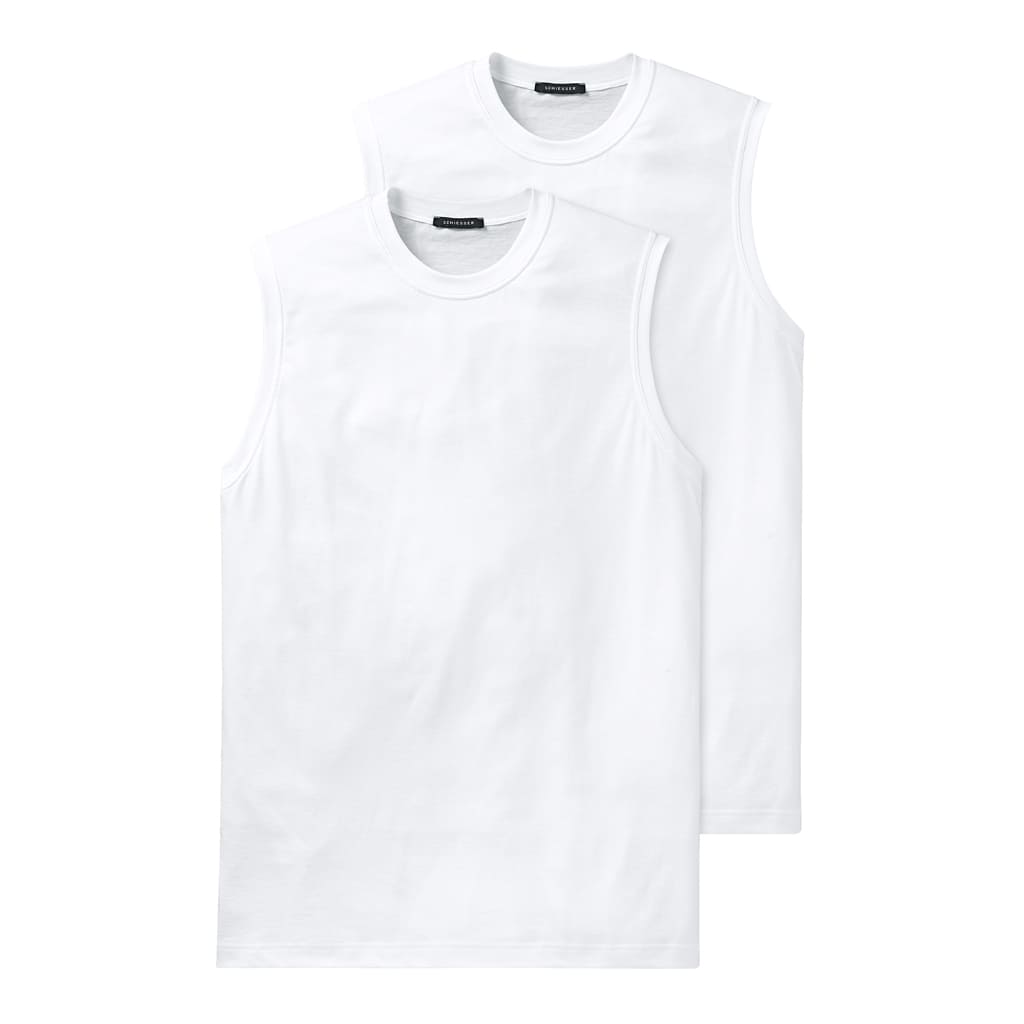 Lot de 2 débardeurs qui font parties de la collection 'Essentials' de SCHIESSER. Les sous-vêtements casuals de cette ligne sont toujours réalisés en qualité Single Jersey délicat donc ils sont particulièrement doux et confortable à porter. Les shirts sans manches sportifs ont une coupe décontractée, un col rond et un petit logo de la marque sur le côté.
