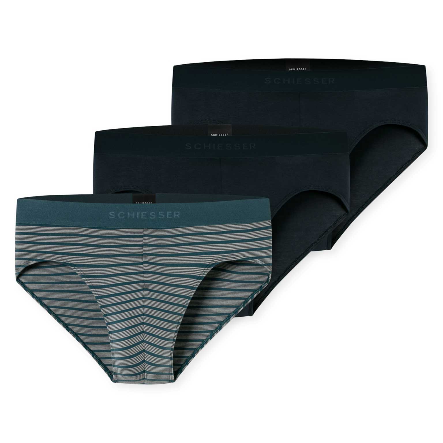 Lot avantageux de 3 slips Rio qui font parties de la collection 95/5 de SCHIESSER. Les sous-vêtements basiques de cette série populaire sont toujours agréablement souples et ils ont une coupe parfaite. Le slip est réalisé en coton bio avec un peu d'élasthanne. Gràce à ce tissu doux, le Rio se porte comme une seconde peau et il est parfait pour un usage quotidien. Le lot se compose de trois slips en couleurs unies ou avec un imprimé rayé, avec une ceinture dans une couleur contastée.