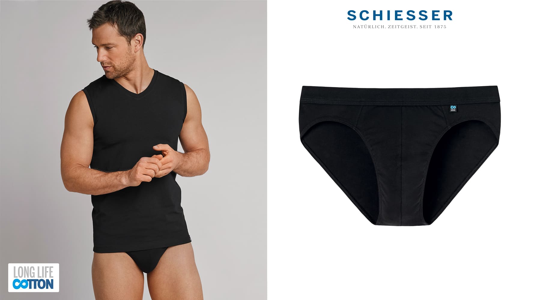 Slip rio qui fait partie de la collection 'Long Life Cotton' de SCHIESSER. Les sous-vêtements de cette collection sont très légères et de qualité supérieure: ils restent en pleine forme même après de nombreux lavages. Le slip est agréablement doux et il a toujours une coupe parfaite.