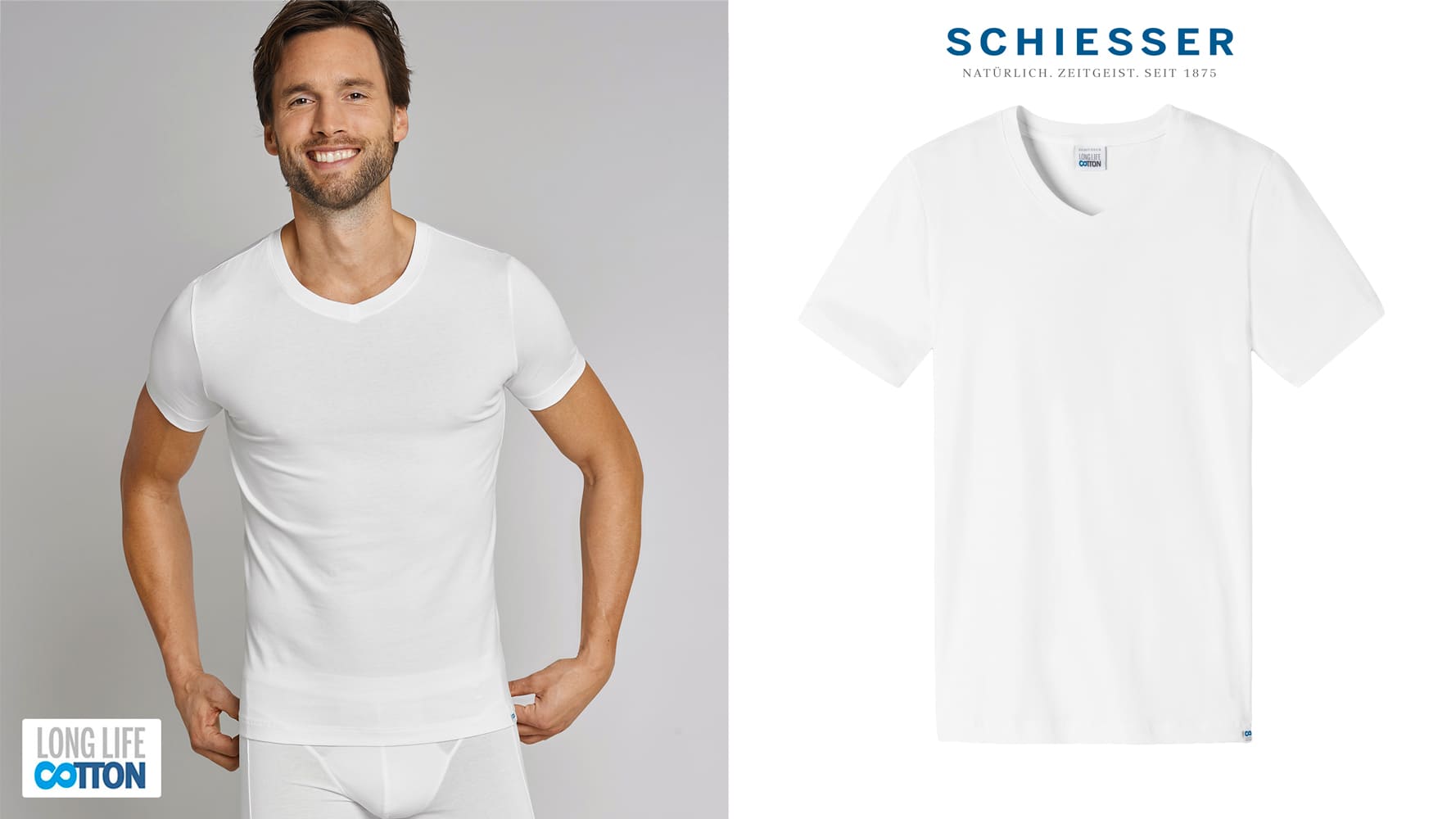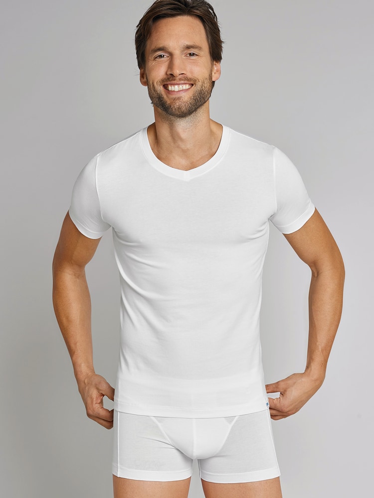 T-Shirt qui fait partie de la collection 'Long Life Cotton' de SCHIESSER. Les sous-vêtements de cette collection sont très légères et de qualité supérieure: ils restent en pleine forme même après de nombreux lavages. Le shirt à manches courtes est agréablement doux et il a toujours une coupe parfaite.