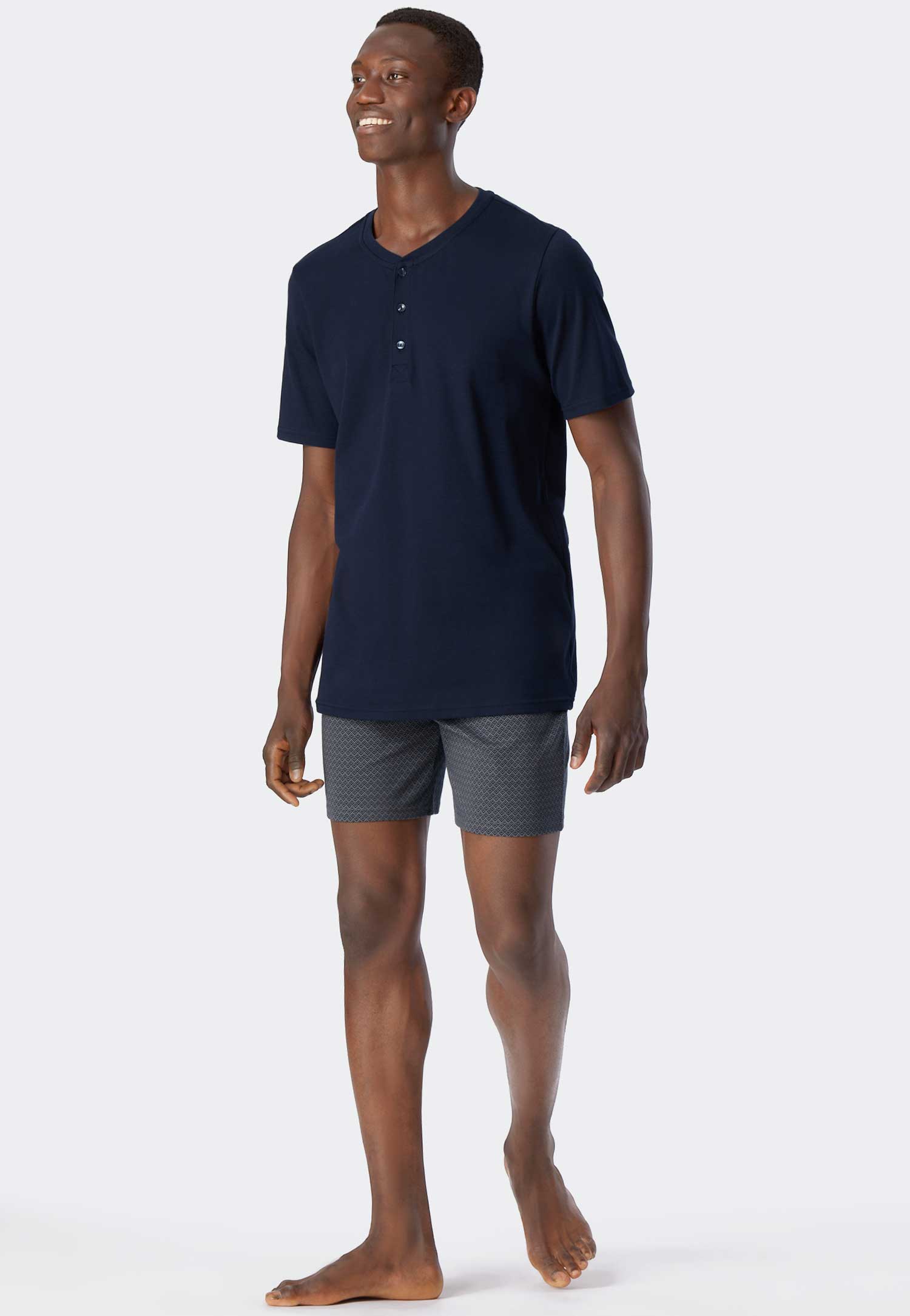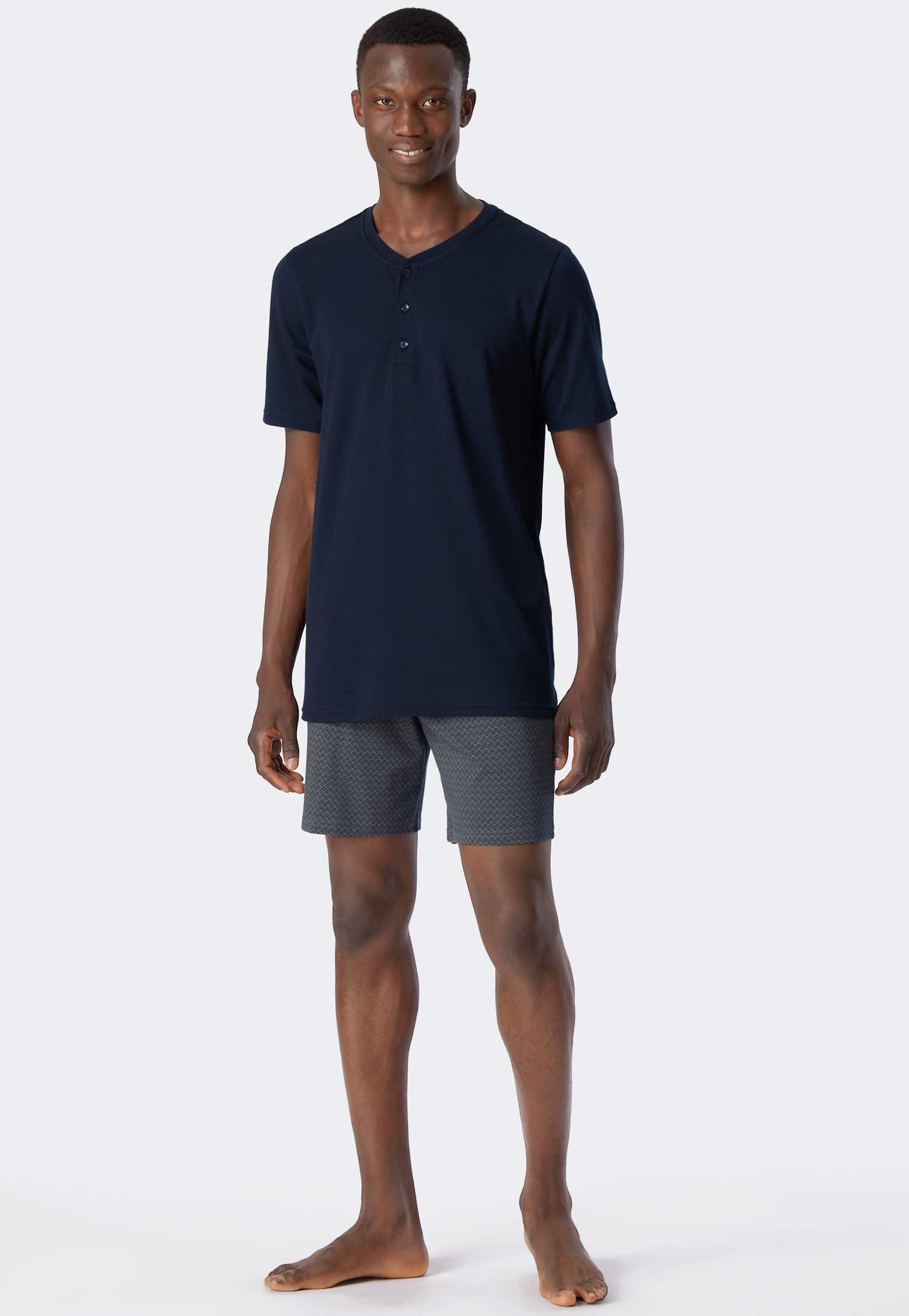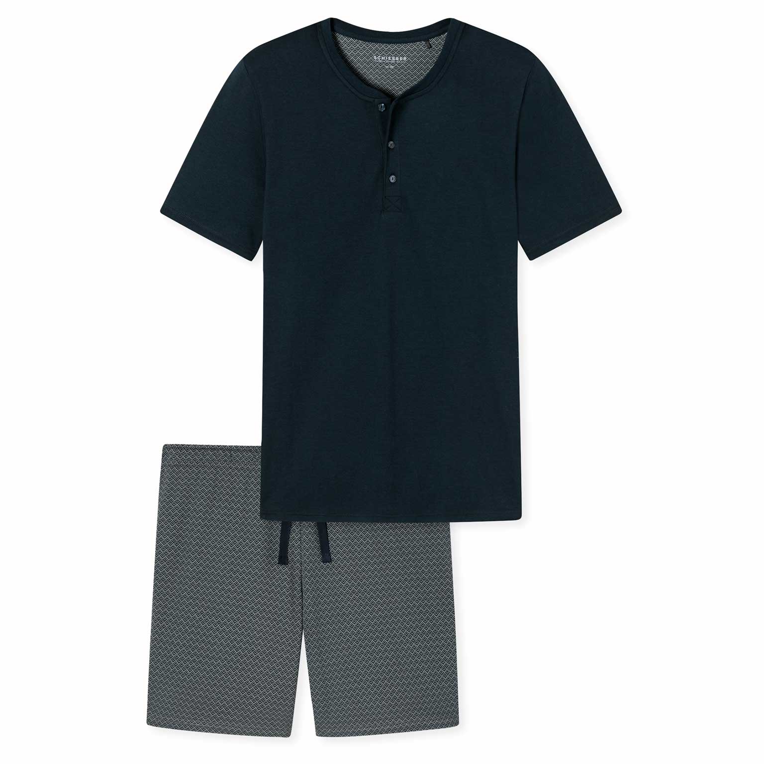 Pyjama court pour homme qui fait partie de la collection 'Fine Interlock' de Schiesser. Le shirt et le pantalon à jambes courtes sont fabriqués en coton de qualité durable. Voilà pourquoi ils sont agréablement doux et confortable à porter, de jour comme de nuit.