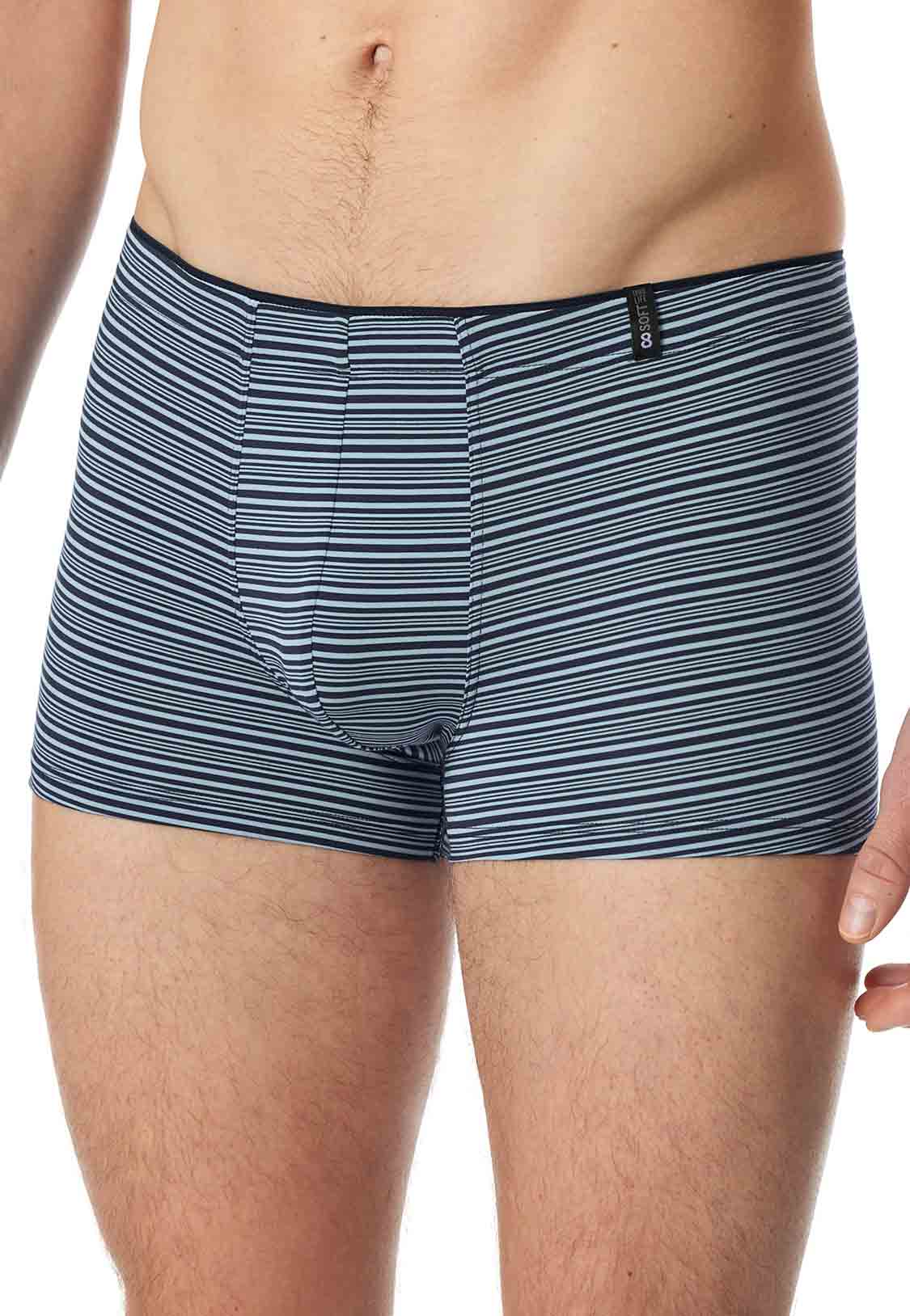 Boxershort pour homme de la collection 'Long Life Soft' de Schiesser. Les sous-vêtements de cette collection se caractérisent par leur composition spéciale du tissu en modal et polyester, offrant une sensation de douceur ultime sur la peau. Grâce à la technologie Long Life, le boulochage et les odeurs désagréables sont évités, vous assurant de profiter de votre boxershort plus longtemps. Disponible en différentes couleurs avec un imprimé de rayures verticales fines.