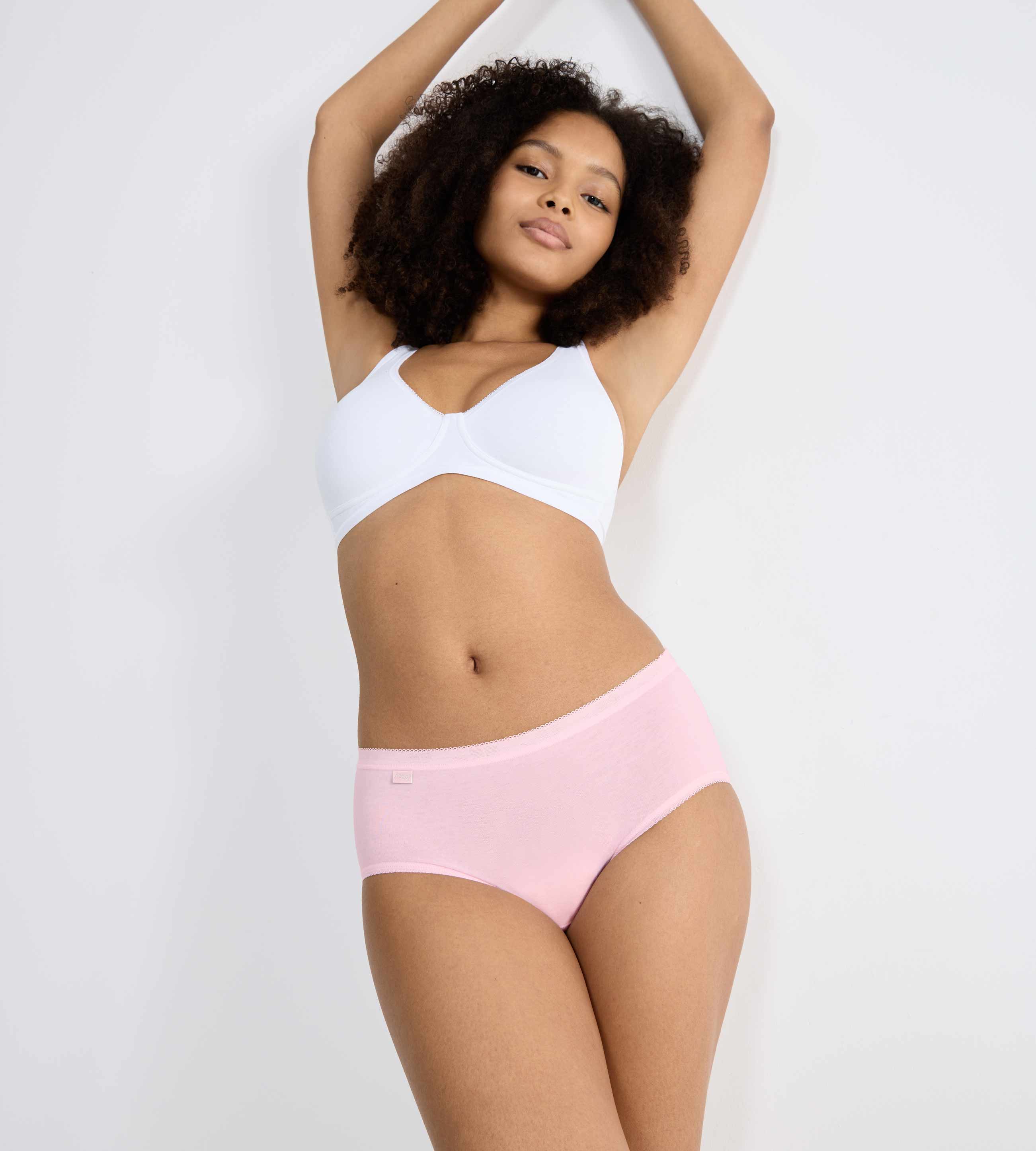 Avec la série Sloggi Basic+, vous optez pour des sous-vêtements intemporels. Ces modèles éprouvés vous aident à passer la journée avec aisance. La série Basic+ offre une excellente coupe et se sent confortable sur la peau grâce au mélange coton/élasthanne. Le coton respire bien et est facile à nettoyer. Comme l'élasthanne est enveloppé de coton, vous pouvez laver la série Basic+ à une température allant jusqu'à 60 degrés sans que vos sous-vêtements ne perdent leur forme! Le slip midi est porté haut sur la hanche pour un soutien et un confort optimaux. Avec un pack avantage, vous obtenez 4 slips midi pour le prix de 3!