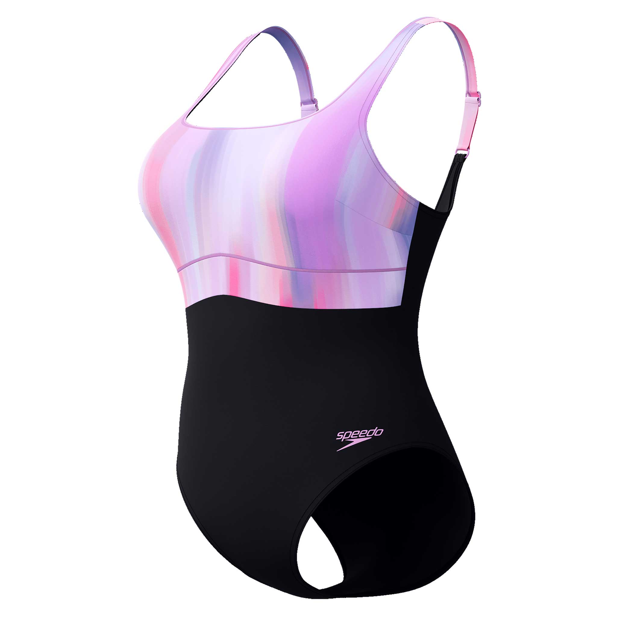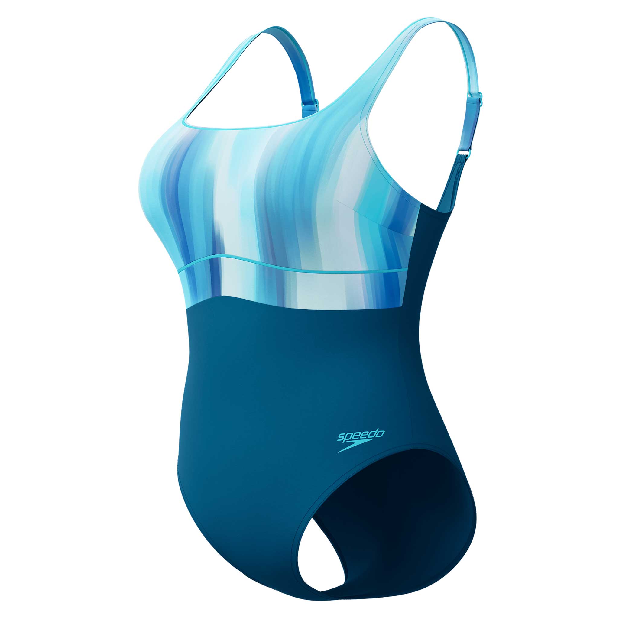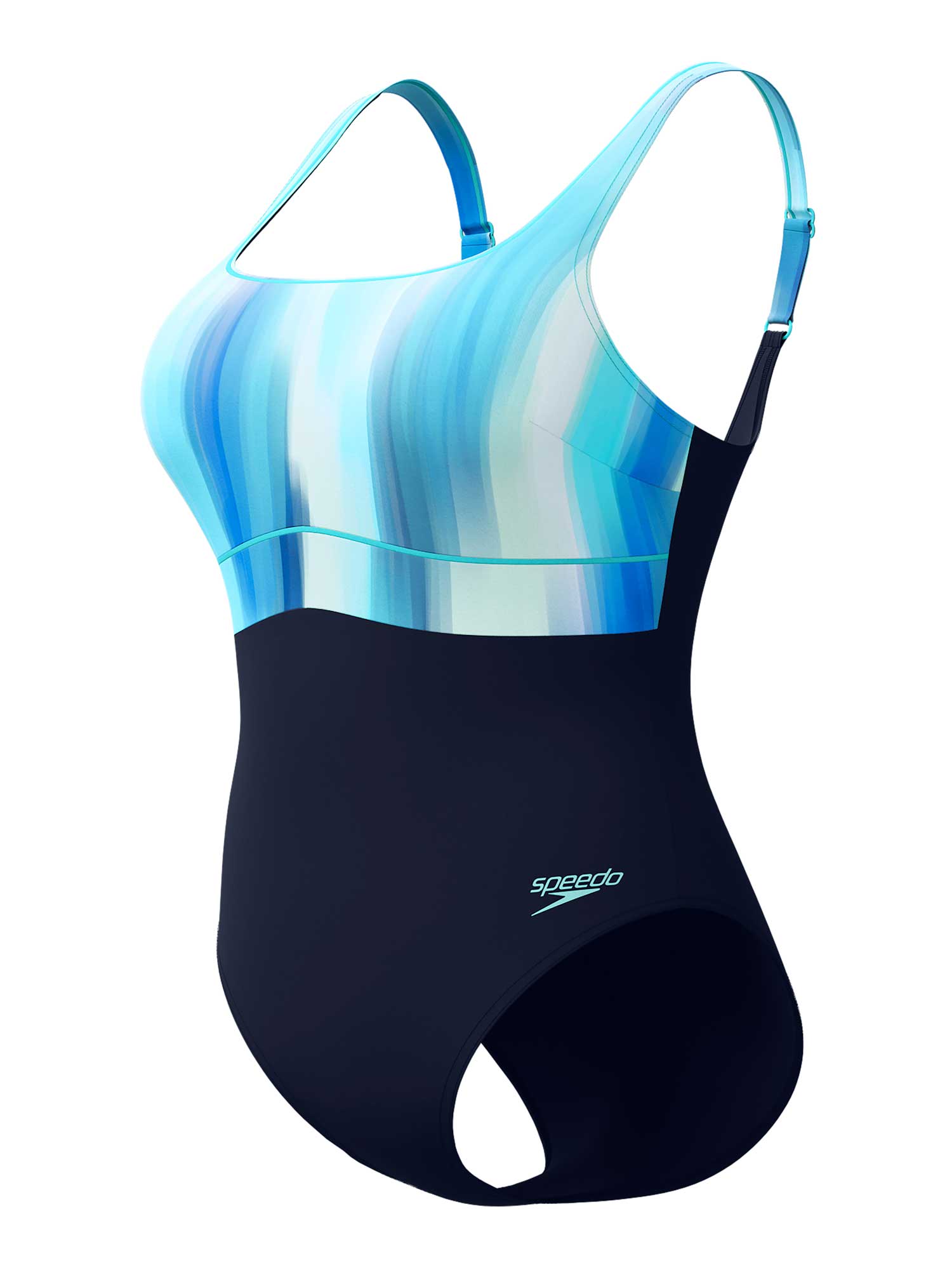 Le Contour Eclipse est un maillot de bain shaping de Speedo. Le tissu sculptant s'ajuste parfaitement au corps et accentue les formes féminines pour une silhouette élégante sans compromettre le confort. Le maillot de bain offre un soutien-gorge moyen intégré dans le tissu et il a un effet sculptant sur l'ensemble du corps. Les bretelles réglables permettent de l'ajuster parfaitement. Le tissu sculptant dure jusqu'à deux fois plus longtemps que les tissus de maillots de bain standard car il est plus résistant au chlore.