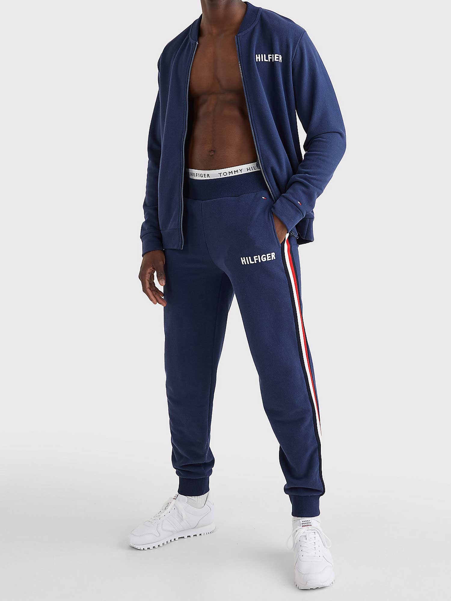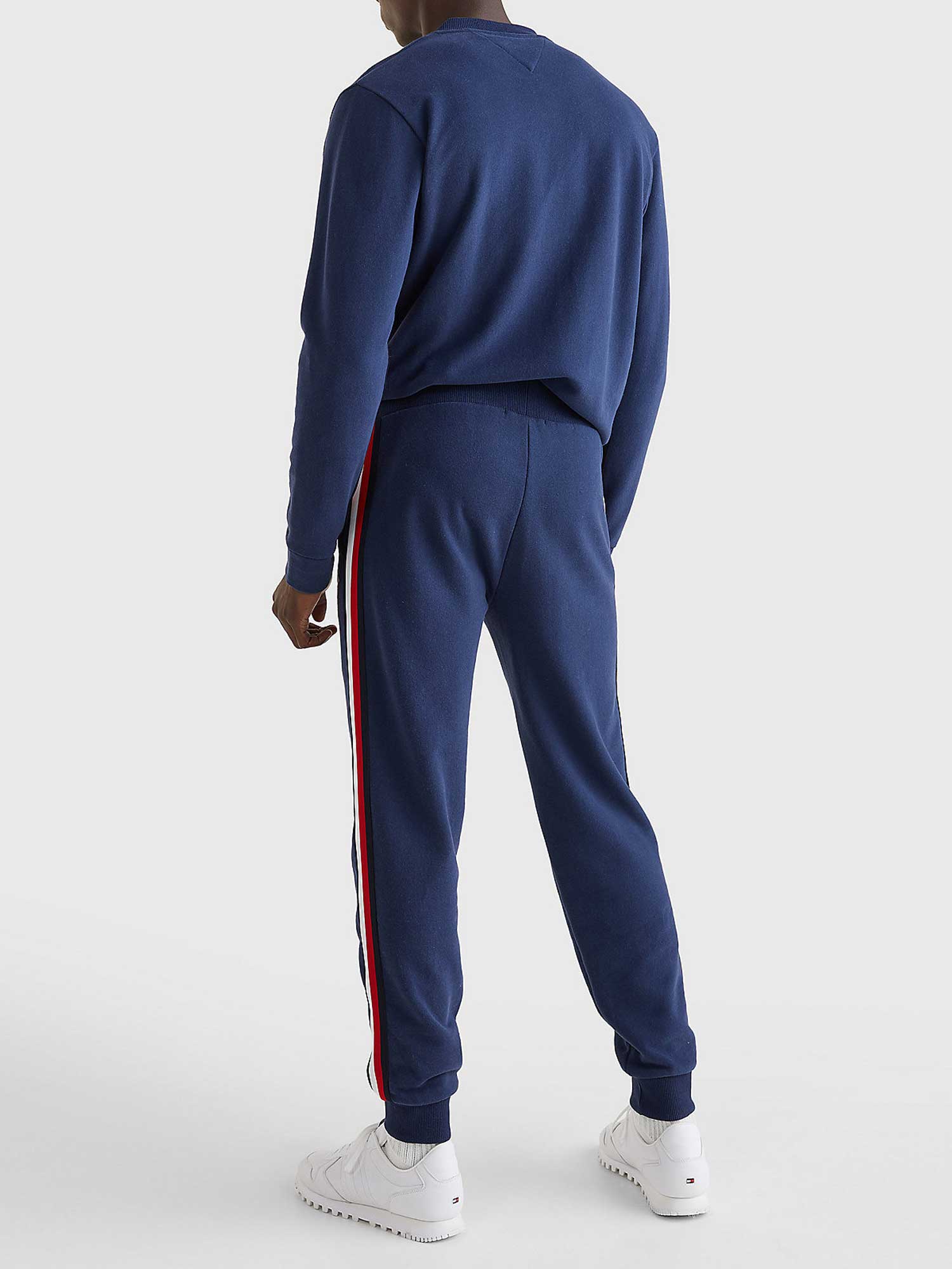 Avec ces joggeurs de Tommy Hilfiger, vous faites une déclaration. Conçus en bleu marine foncé avec un ruban logo TH audacieux sur le côté de la jambe. Le pantalon est fabriqué dans un mélange doux de coton et de polyester, ce qui le rend très confortable et lui permet de bien s'adapter aux jambes. La taille est élastique pour un ajustement renforcé.